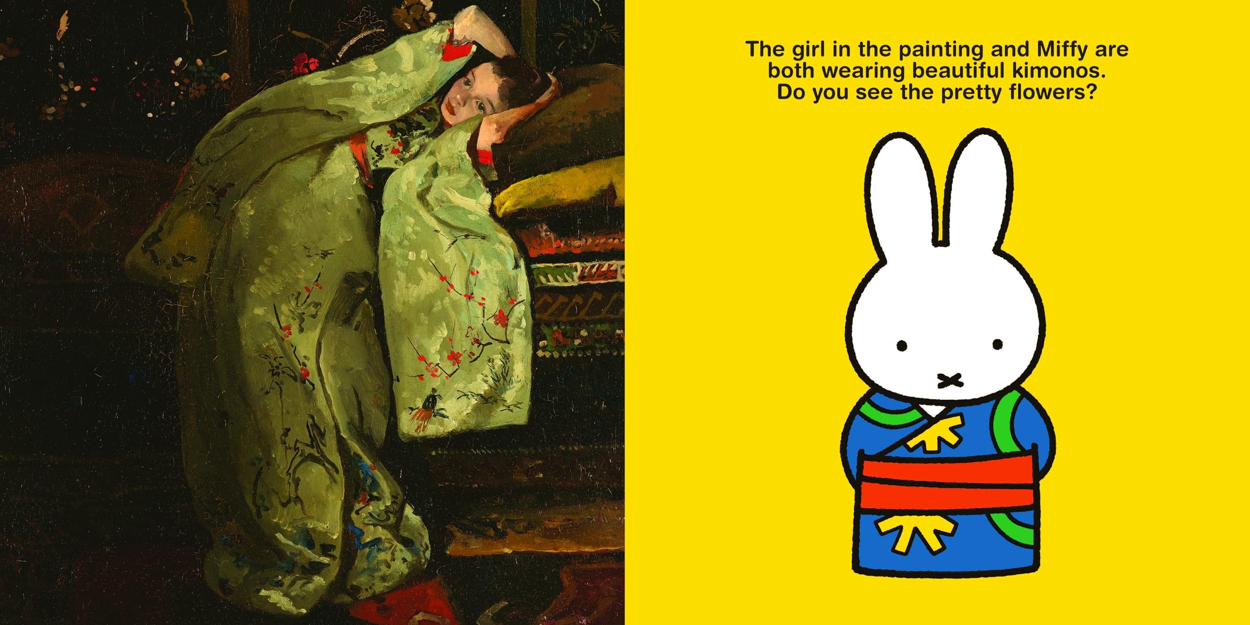 In miffy x rijksmuseum highlights of the Rijksmuseum’s permanent collection have been paired with Dick Bruna’s work. Popular works from various periods are showcased alongside Dick Bruna’s simple and endearing illustrations.