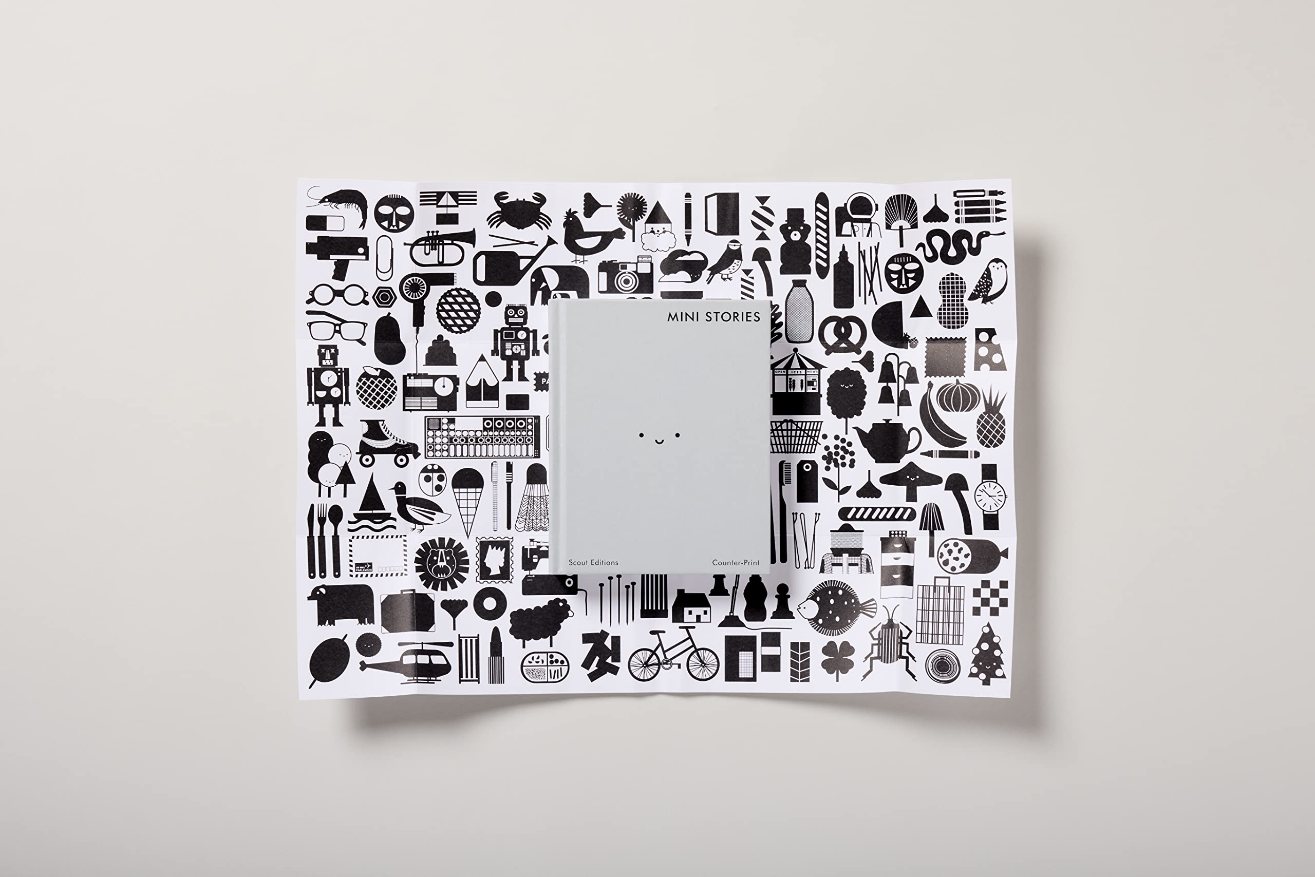 Mini Stories boasts eight distinct bellyband designs, each adorned with a unique illustration from the book. These thoughtfully designed bellybands fold out to reveal a black and white poster showcasing a collection of icons, specially crafted by Scout Editions.