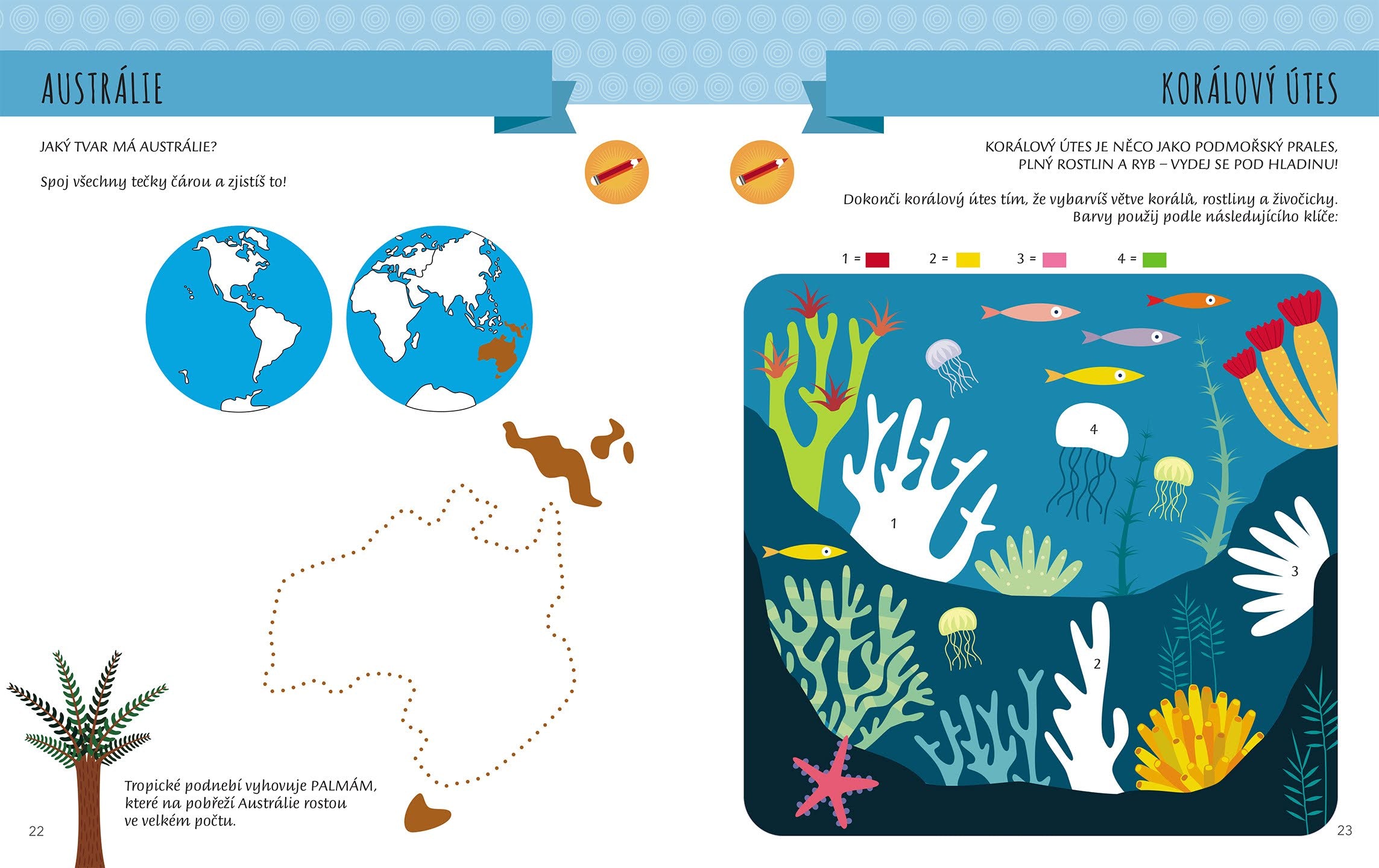 Děti se v knize vydají na cestu za poznáním Země. Prozkoumají jednotlivé kontinenty, ponoří se pod hladinu oceánů a pomocí vybarvování, dokreslování čar a nalepování samolepek se dozvědí mnoho nových a zajímavých informací o našem světě. Současně se na základě principů montessori pedagogiky rozvinou i jejich kognitivní schopnosti.
