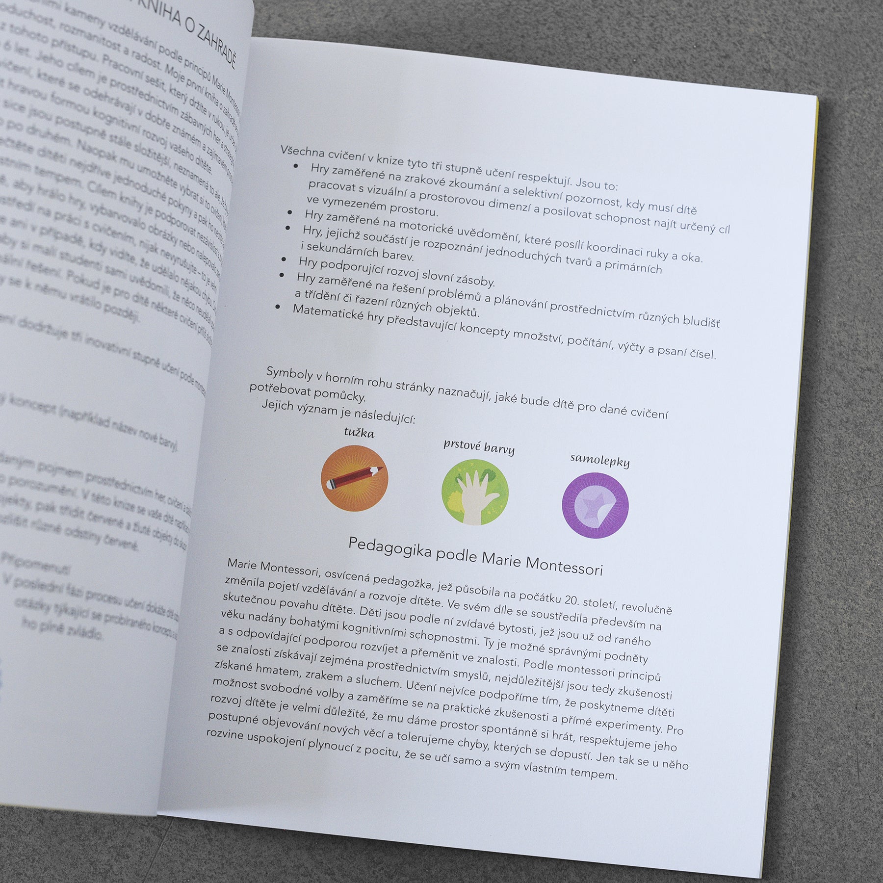 Najde malý krteček Vilda v podzemním bludišti maminku? Poznáš stromy na zahradě podle jejich tvaru? Pomůžeš pavoučkovi Hugovi s pletením pavoučí sítě? Kniha dětem na základě principů montessori pedagogiky hravým způsobem ukáže, co všechno se může skrývat na zahradě u jejich domu.