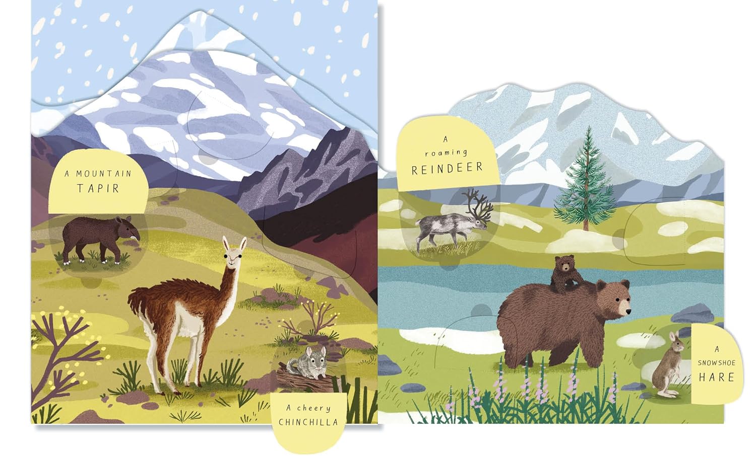 Then, lift the flaps on each page to reveal the diverse wildlife that calls these mountains home, from the majestic condors soaring high above to the snow leopards roaming the slopes below.