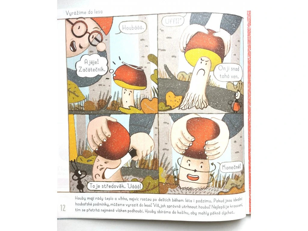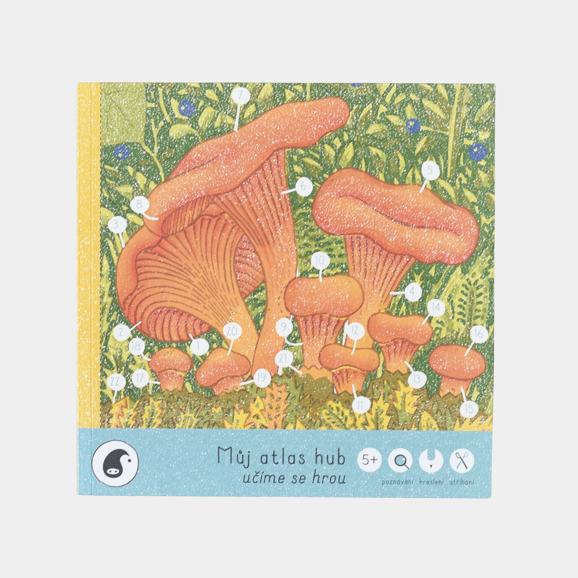 MŮJ ATLAS HUB je interaktivní knížka plná úkolů (stříhání, kreslení, lepení), která dětem pomůže nahlédnout do světa hub. Kromě různých úkolů najdou děti uprostřed i poznávací karty k dotvoření. Z nich je pak možné slepit LEPORELO, které se může hodit v lese při houbaření.
