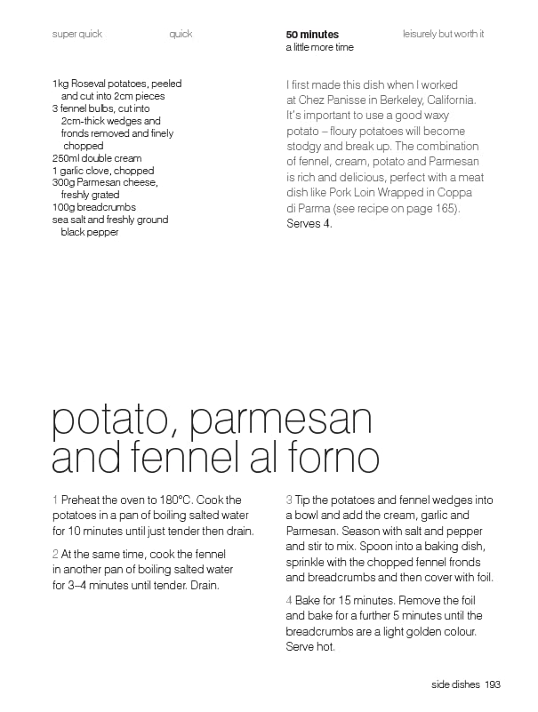 Chapters are split by meal times with an emphasis on simplicity, with big and small sharing plates and lots of one-pots on offer. There are speedy starters, mains and puddings but Theo shows you how to make Italian staples from scratch too. So, when you do have time and want to make your own pastry or bake your own pizza, you have the best recipes to hand to really delve into the Italian art of cooking.
