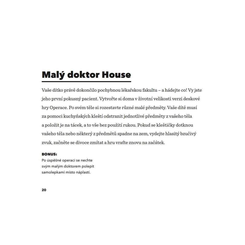 Potřebujete pauzu právě teď? Tato kniha obsahuje rychlé a jasné návody na 50 zábavných, účinných a veselých her, které můžete hrát s malými dětmi a u toho ležet. Nepotřebujete k tomu žádné baterie, obrazovky ani nekonečný seznam pomůcek! Vyzkoušejte: