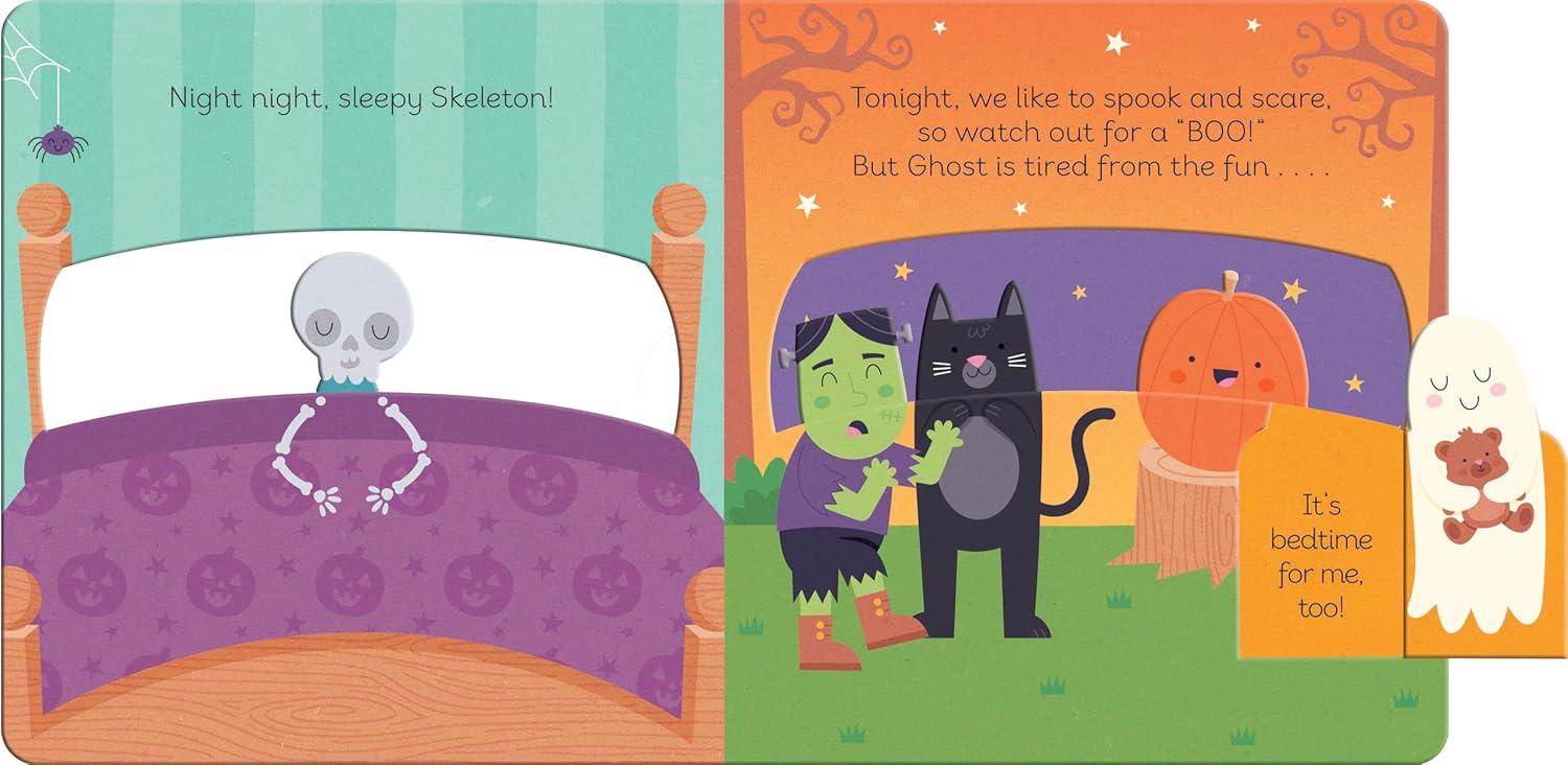 It’s Halloween night, and the ghosts and skeletons are starting to feel tired! They’ve had fun trick-or-treating, and now it’s time for bed. Follow along as one-by-one, the friendly characters finish their spooky activities and creep home in the moonlight.