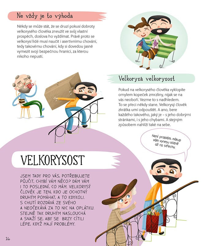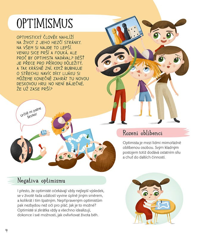 Někomu nevadí nekonečné čekání, holt je trpělivý. Jiný musí pořád něco dělat, je pracovitý. Nepořádný člověk si neuklidí, ani kdyby trakaře padaly, protože proč? Smíšek se rád směje a suchar nerozumí vtipům. Jsme všichni stejní, lidé z masa a kostí, ovšem povahu – tu máme každý jinou. Jakého založení jsi ty, milý malý čtenáři? Ochotně půjčuješ hračky svým kamarádům, nebo si je bedlivě střežíš a nedáš z ruky? Nebo že by ses neuměl rozhodnout? V tom případě si přečti tuhle knížku plnou veselých obrázků a lidských povah a zjisti, jak jsi na tom…