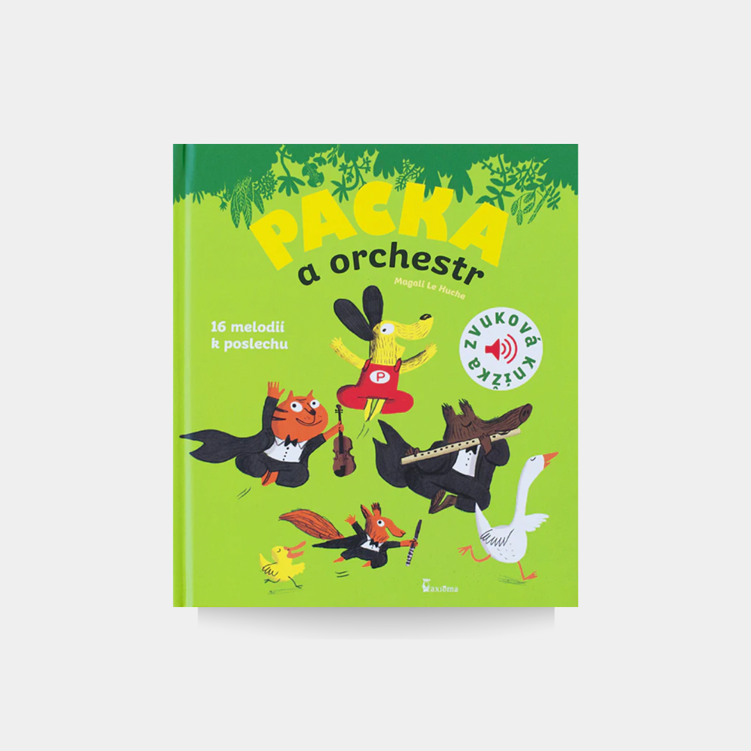 Stiskni tlačítko a poslouchej autentické melodie vážné hudby s dlouhými zvukovými stopami. 1 příběh, 16 melodií z hudební suity Karneval zvířat francouzského skladatele Camille Saint-Saënse a 10 klasických hudebních nástrojů. Pejsek Packa chce založit orchestr a vydává se proto do lesa hledat kamarády muzikanty. Podaří se mu ho sestavit a stane se dirigentem nočního koncertu? Packa ti představí klarinet, klavír, housle, kontrabas, xylofon, pikolu, celestu, violoncello, příčnou flétnu a fagot. Nádherné, barevné ilustrace Magali Le Huche navodí tu správnou slavnostní atmosféru lesního dobrodružství. Celou knihu si prohlédněte a poslechněte ve videu na této stránce. V této edici jsme také vydali knihu Packa hraje jazz, Packa hraje rock a Packa a africká hudba.