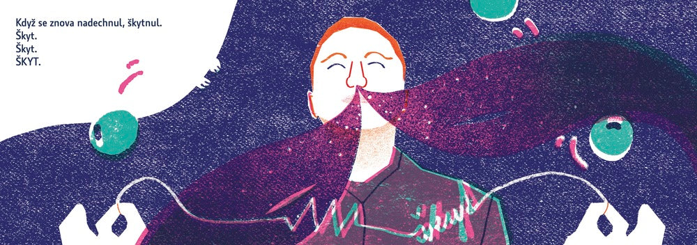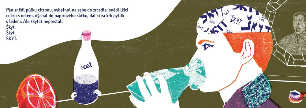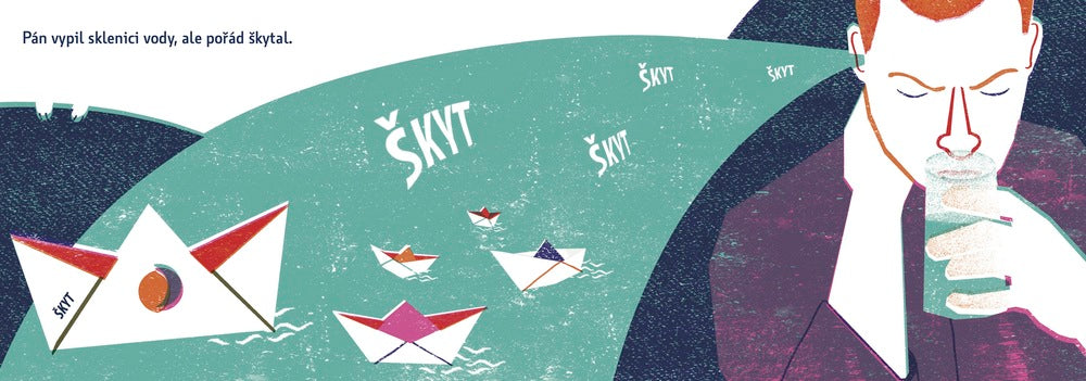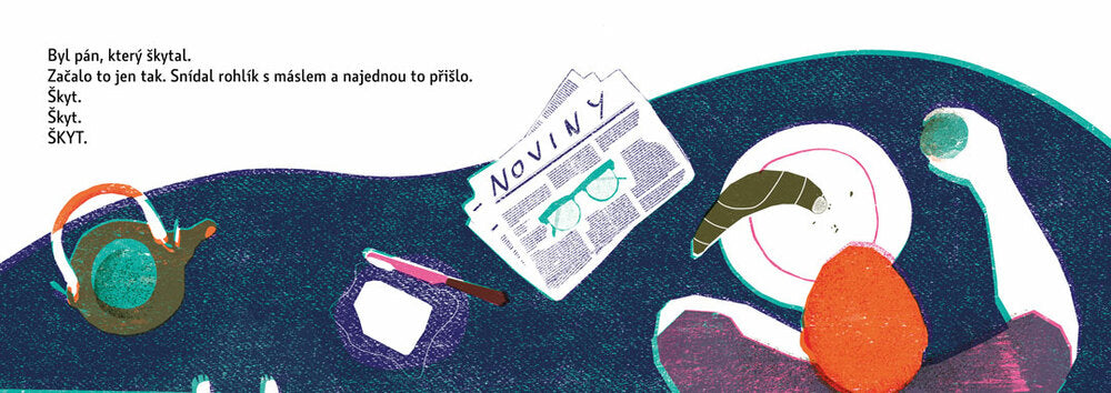 "Byl pán, který škytal. Začalo to jen tak. Snídal rohlík s máslem a najednou to přišlo. Škyt. Škyt. ŠKYT." A nepřestal. Škytal ve dne, škytal v noci, škytal když jedl, škytal když čůral i když spal. Ze škytání si vytvořil pěkné podnikání. Pak zestárnul a umřel.