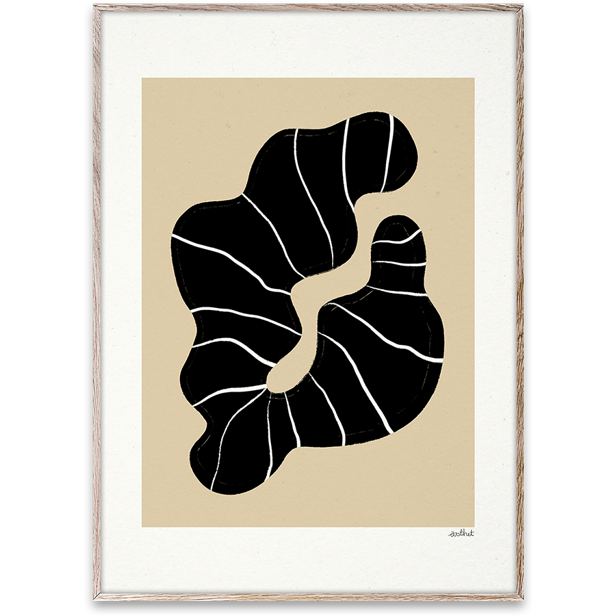 Unexpected discoveries form the backdrop to Beach Find by German artist and designer Ästhet. A fluid form in black and white sits against a beige backdrop, appearing as if a sea creature has swum into a shallow rock pool. The piece aims to transport the viewer to a sun-filled day by the beach, complete with exploration and new discoveries.