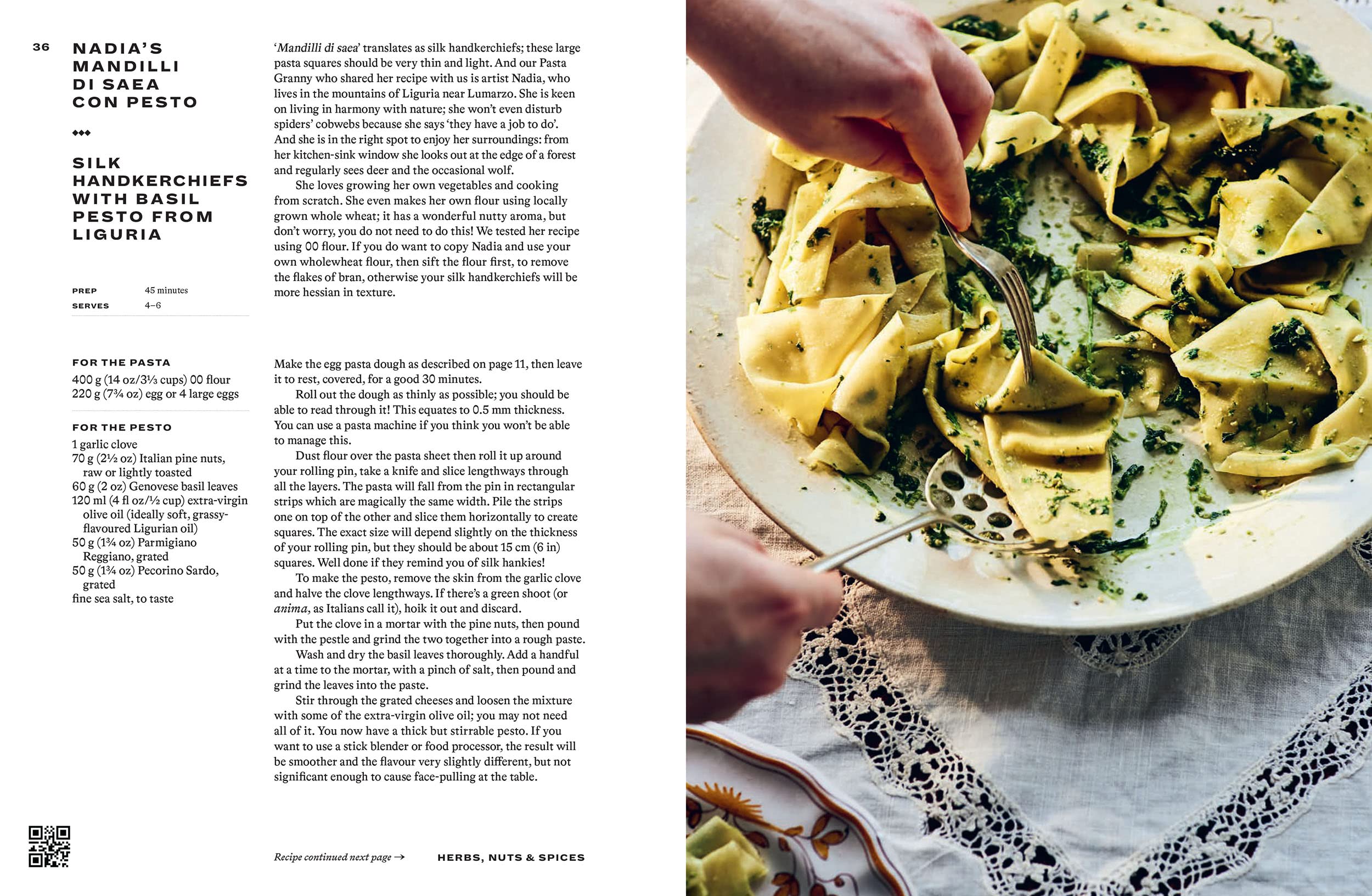 Discover 91 year-old Pina's chestnut gnocchi with walnut pesto, lovingly made with ingredients she grows around her home in Liguria; or 99 year-old Marietta's special tagliatelle recipe, which is not really a recipe at all but a reflection of her vegetable garden, the Calabrian countryside and the changing seasons. As well as meat, seafood and vegetable pasta recipes, chapters cover pizzas, pastries and pies, rice and pulses, dairy and herbs, nuts and spices.