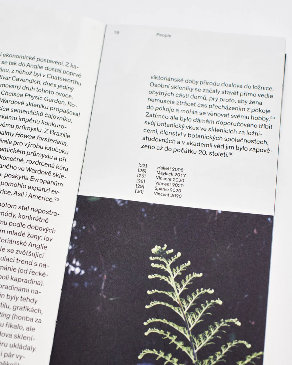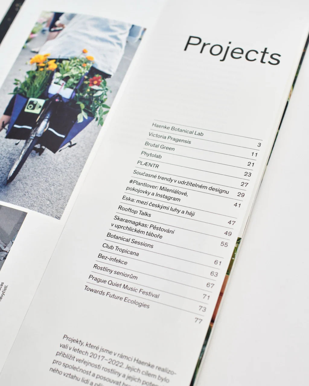 Plantlovers. The invisible botany of urban spaces traces five years of the Prague-based initiative Haenke against the backdrop of the houseplant phenomenon of recent years. Placing it in a broader social, cultural and economic context, the book delves into the background of selected projects from public space installations to community activities. Offering a critical reflection on the sustainability of the plant trade, the book features interviews with Czech and international artists, designers, curators and gardeners such as British author Alice Vincent, design historian Penny Sparke, French curator duo studio dots or Czech fashion designer Tereza Rosalie Kladošová. It is accompanied by documentary photographs of Vojtěch Veškrna - the winner of this year's Czech Grand Design Awards - in a unique layout by graphic designer and typographer Jolana Sýkorová.