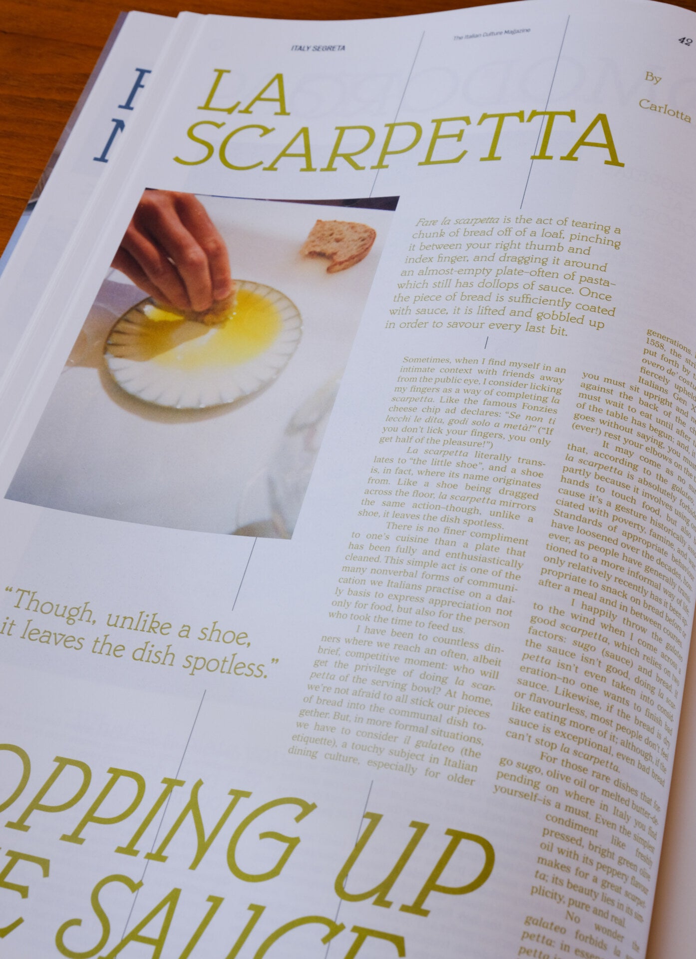 This is Italy Segreta’s Quotidianno: the first-ever, limited-edition selection of articles from our site!!! This annual magazine pays homage to the very Italian quotidiano, or daily newspaper, while timelessly capturing la quotidianità, the daily life, of our country. We take you through the early morning melody of the coffee bar, the requisite pennichella (afternoon nap), post-night out spaghetti, and everything in between–Italian style.