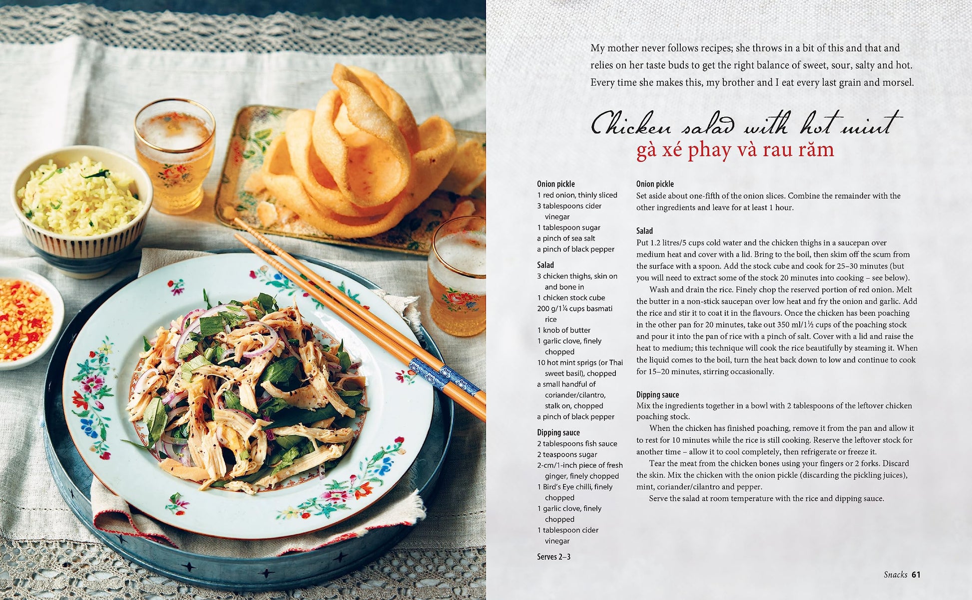 Uyen guides you through chapters such as Breakfast, Soups, Snacks, Noodles, Lunch & Dinner and Desserts, weaving in tales of etiquette, personal history and tradition, providing evocative photos of her travels throughout.