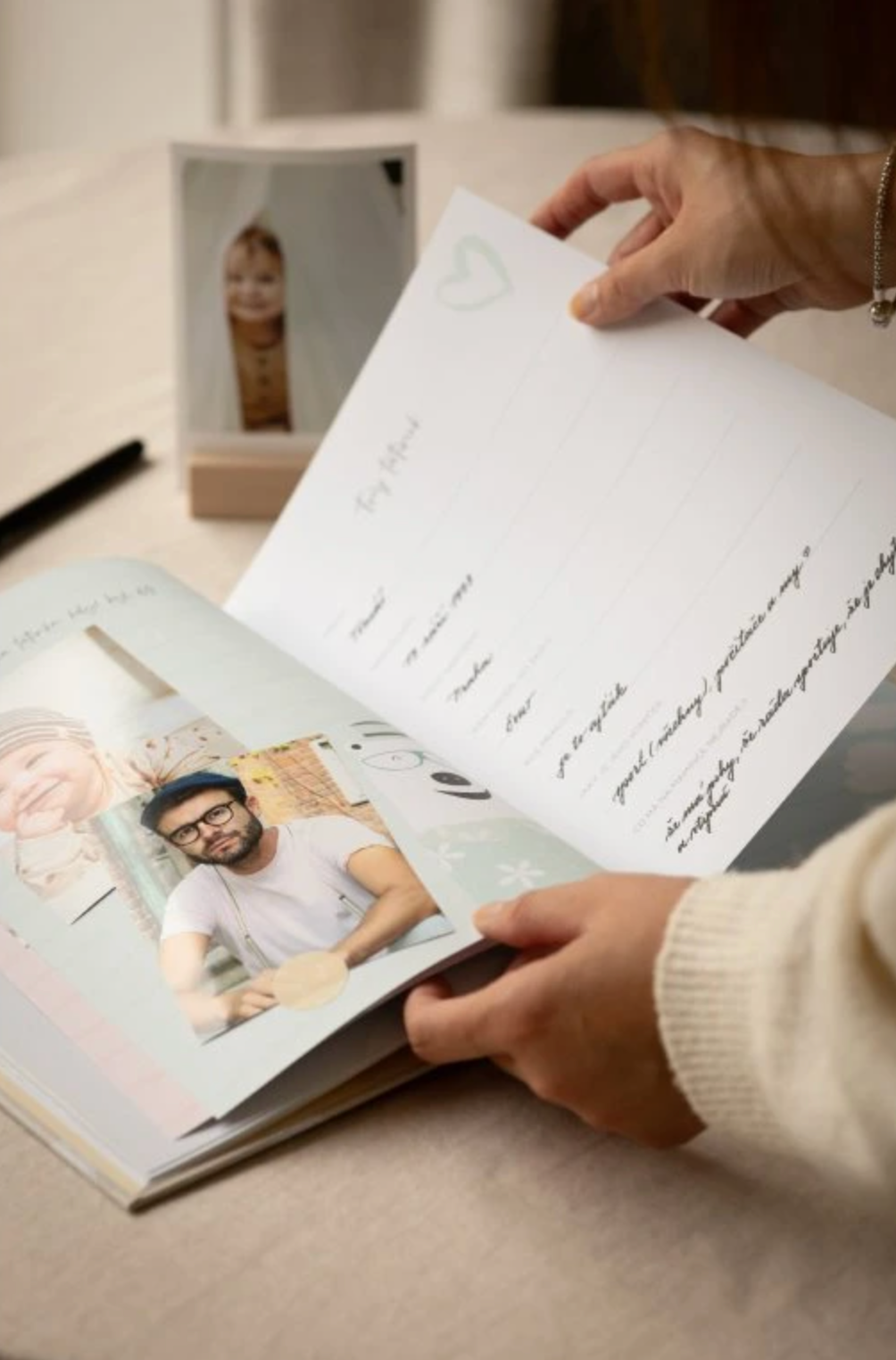 Prostor pro texty i fotografie, kam si můžete zaznamenat osobní vzpomínky, myšlenky a podrobnosti o každém milníku.