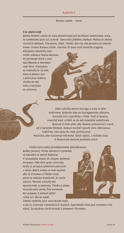 Poslední hra v tomto výběru, „Bouře“, je úplně jiná. Shakespeare se v ní loučí s divadlem a jeho čarovnou mocí i se svým pozemským bytím. Každá z uvedených Shakespearových her je doplněna úvodem a závěrem, které čtenářům přibližují vnější projevy doby: renesanční módu, architekturu, rodinný život, dobové válečnictví, medicínu, spiknutí, ale i životní osudy anglických panovníků a jejich blízkých. Převyprávění i naučné texty Renáta Fučíková bohatě doprovodila svými ilustracemi.