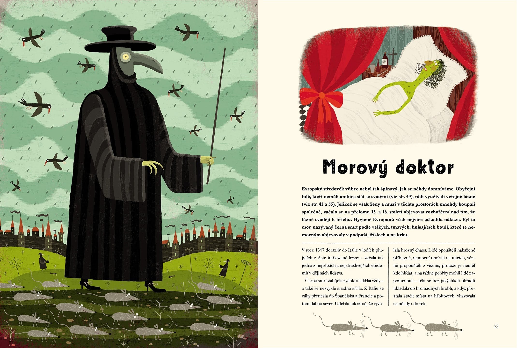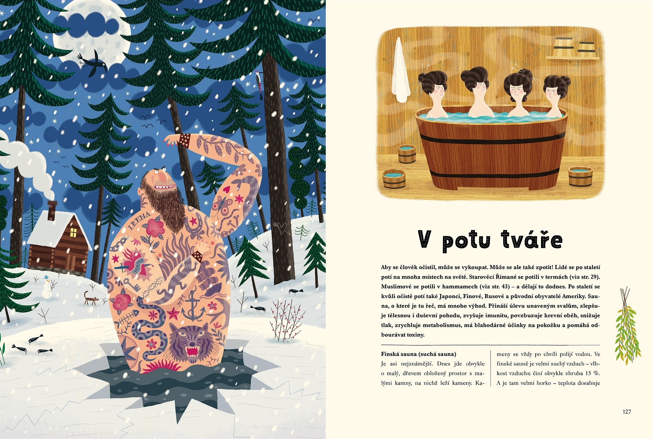 Proč je splachovací záchod jedním z nejdůležitějších vynálezů lidstva? Jak se sprchují kosmonautky? Může make-up zabíjet? Kam i Král Slunce Ludvík IV. chodil pěšky? Čím si morový doktor chránil obličej? Tato kniha, která zaujme děti stejně jako dospělé, představuje objevy a vynálezy spjaté se špínou, mytím, čištěním, hygienou a medicínou. Ilustroval ji skvělý Piotr Socha, kterého už znáte z bestsellerových knih Včely a Stromy.