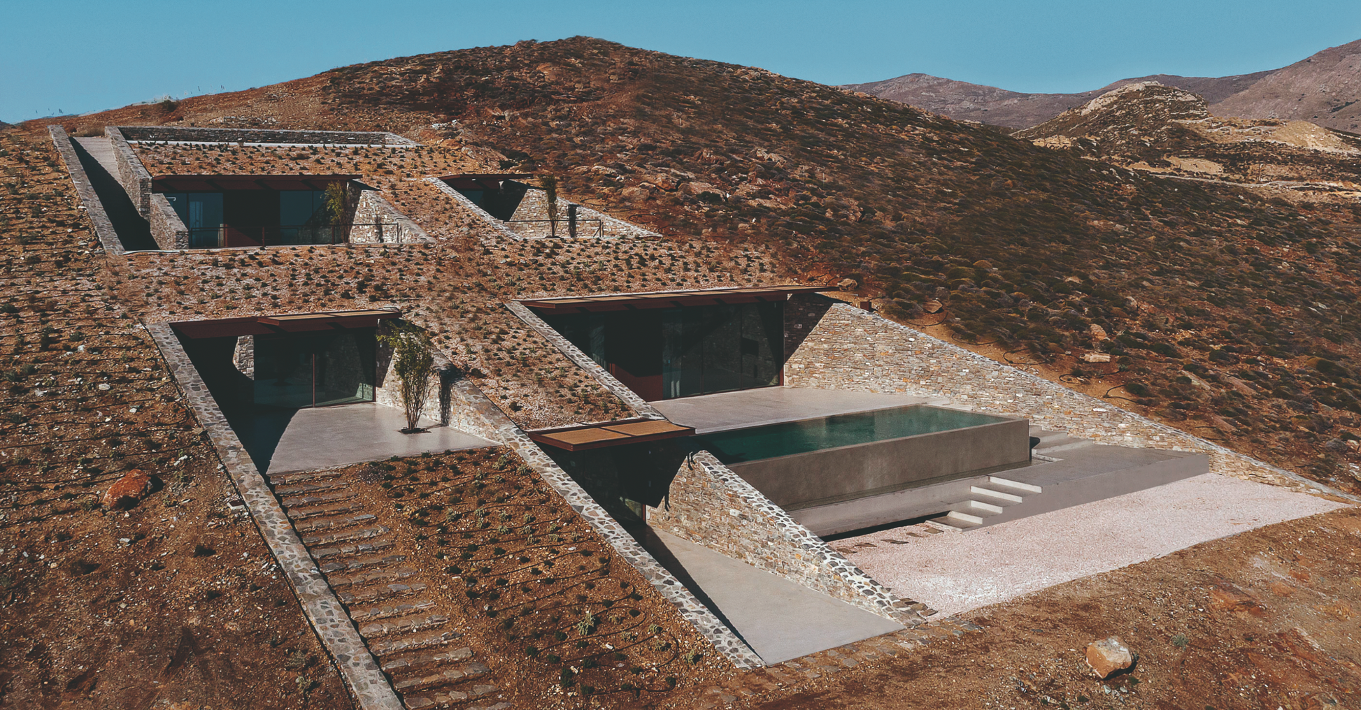 Featured architects and buildings: Además Arquitectura (CM House, Canning, Buenos Aires, Argentina); Ap Valletta (The Coach House, Balzan, Malta); B. E. Architecture (Armadale Residence, Melbourne, Victoria, Australia); Bard (Cruachan Beag, Isle of Eriskay, UK); Beef Architekti (Casa Fly, Palma De Mallorca, Mallorca, Spain); block722 (Viglostasi Residence, Syros, Cyclades, Greece); Carl Fredrik Svenstedt Architects (Casa Ward, Sarnano, Le Marche, Italy); Charged Voids (Residence 145, Chandigarh, India); Cubo Design Architect (C4L, Tokyo, Japan); Daniel Joseph Chenin (Fort 137, Las Vegas, Nevada, USA); DDM Architectuur (House B, Antwerp, Belgium); Ensamble Studio (The Truffle, Costa Da Morte, Galicia, Spain); Frank Lloyd Wright (Fallingwater, Mill Run, Pennsylvania, USA); Giordano Hadamik Architects (Villa Nemes, Liguria, Italy); Hw Studio (Enso II, San Miguel De Allende, Guanajuato, Mexico); Kengo Kuma (Jeju Ball, Jeju Island, Jeju, South Korea); Kropka Studio / Klub Architekci (House in the Landscape, Zawiercie, Poland); Leonel Marques Rodrigues (Casa Do Penedo, Moreira Do Rei, Fafe, Portugal); Lorenzo Guzzini (Villa Molli, Sala Comacina, Lombardy, Italy); Malik Architecture (House of Solid Stone, Jaipur, Rajasthan, India); Mar Plus Ask (The Olive Houses, Tramuntana Mountains, Mallorca, Spain); MASASTUDIO (Stone Court Villa, Paradise Valley, Arizona, USA); Matías Zegers Arquitectos / Catalina Pacheco (Casa Tapihue, Casablanca, Valparaíso, Chile); Mold Architects – Iliana Kerestetzi (Ncaved, Serifos, Cyclades, Greece); Nathanael Dorent Architecture and Lily Jencks Studio (Ruins Studio, Dumfries, Dumfries & Galloway); Neil Logan / Norman Jaffe (Heller Lane, Long Island, New York, USA); Nomo Studio (Stone House, Menorca, Spain); OBBA (The Layer, Ganghwa, South Korea); Olson Kundig (The Pierre, San Juan Islands, Washington, USA); Paritzki & Liani Architects (I/S House, Savyon, Israel); Pepa Díaz (Casa Pastrana, Mazarrón, Murcia, Spain); PPAA (Echegaray House, Naucalpan De Juárez, State of Mexico, Mexico); Room 11 (D’entrecasteaux House, Bruny Island, Tasmania, Australia); Sami-Arquitectos (E/C House, Ilha Do Pico, Azores, Portugal); Sinas Architects (Xerolithi, Serifos, Cyclades, Greece); Skene Catling de la Peña (Flint House, Waddesdon, Buckinghamshire, UK); Studio Archaos (Rogac House, Vis, Croatia); Studio KO (Villa DL, Ghazoua, Marrakesh-Safi, Morocco); Studio Rick Joy (Sun Valley House, Sun Valley, Idaho, USA); Taller Gabriela Carrillo (Casa Piedra, Acapulco, Guerrero, Mexico); Ted’a Arquitectes (Jordi and África’s Home, Montuïri, Mallorca); Tiago Sousa (Box House, Romarigães, Paredes de Coura, Portugal); Tomoaki Uno Architects (Takamine House, Nagoya, Aichi, Japan); Tony Fretton Architects (The Red House, London, UK); Tuñón y Albornoz Arquitectos (Stone House, Cáceres, Extremadura, Spain); Type (Redhill Barn, Devon, UK); UNStudio (Fairyland Guorui Villas, Beijing, China); Vicens+Ramos (Single-Family Home in Las Encinas, Las Encinas, Madrid, Spain); Wespi de Meuron Romeo Architects (Brione House, Locarno, Ticino, Switzerland); Will Gamble Architects (The Parchment Works, Northamptonshire, UK).
