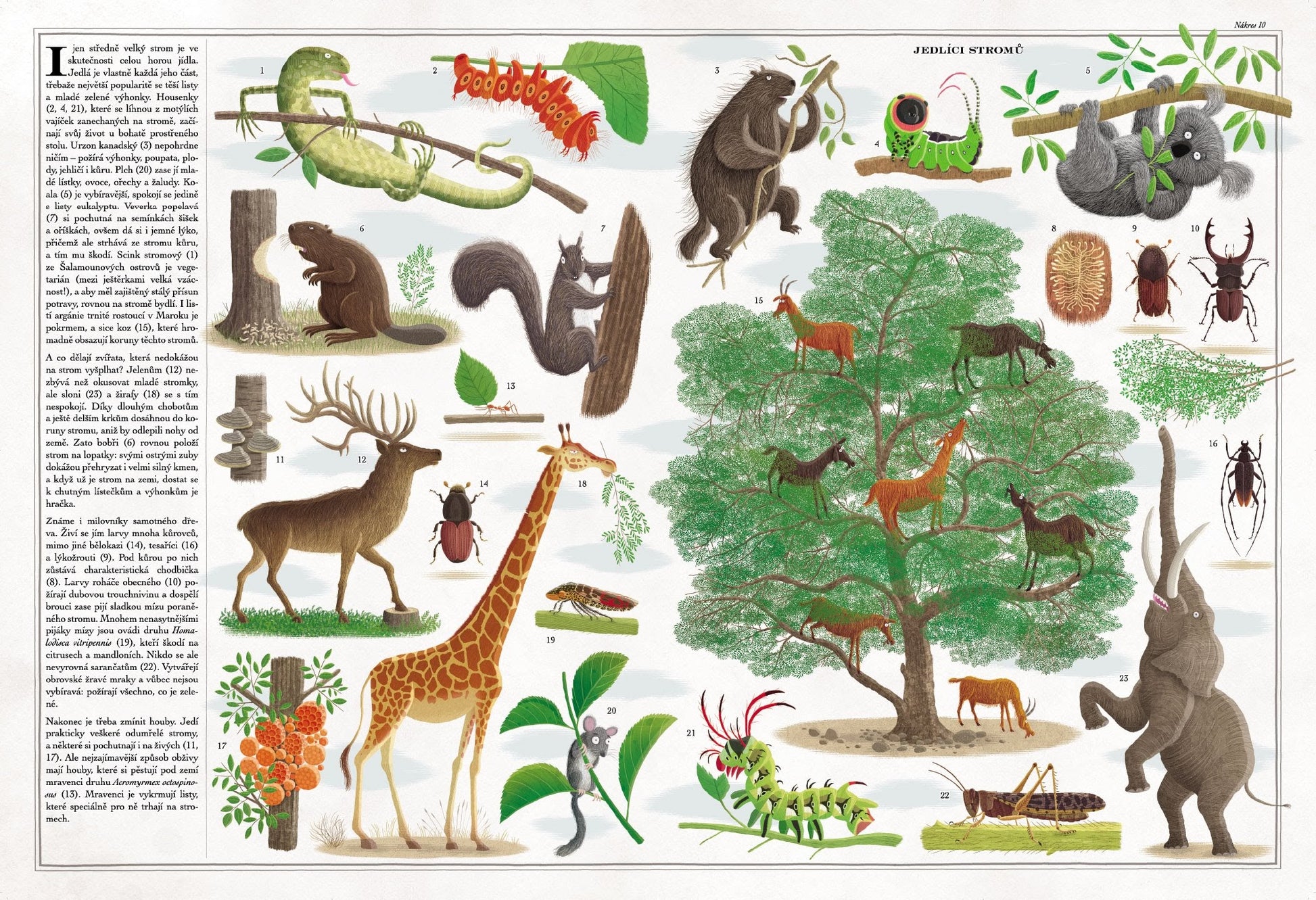 Překrásná velkoformátová kniha Stromy od tvůrců bestselleru Včely zve malé i velké čtenáře do fascinujícího lesního světa. Dozvíte se, kdo ve stromech žije, a kdo je zasazuje a kdo se stromy živí. Dočtete se, co je to strom života, strom lidožroutů a uvidíte, jak vypadal posvátný fíkovník. Spatříte nejstarší, nejvyšší a nejtlustší strom a ještě mnoho dalšího. Více než 34 obrázkových tabulí, které v knize najdete totiž nejen doplňuje a ilustruje texty, ale přináší spoustu dalších zajímavostí. Každá je navíc samostatným uměleckým dílem.