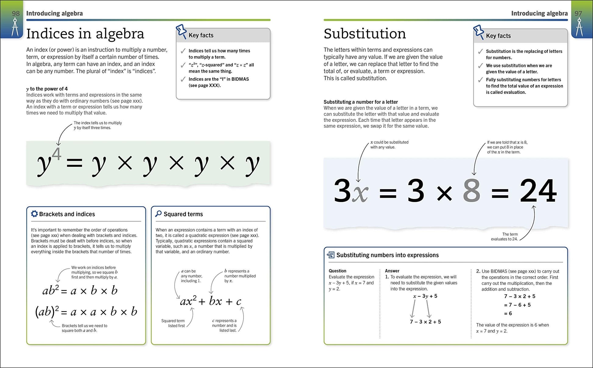 Instructive information panels use real-world examples to make maths relevant and less daunting for students, parents, and teachers alike. Fact boxes provide rapid-fire points for easy learning and are perfect for classroom quizzes. Studying for exams has never been easier using this exceptional educational tool.
