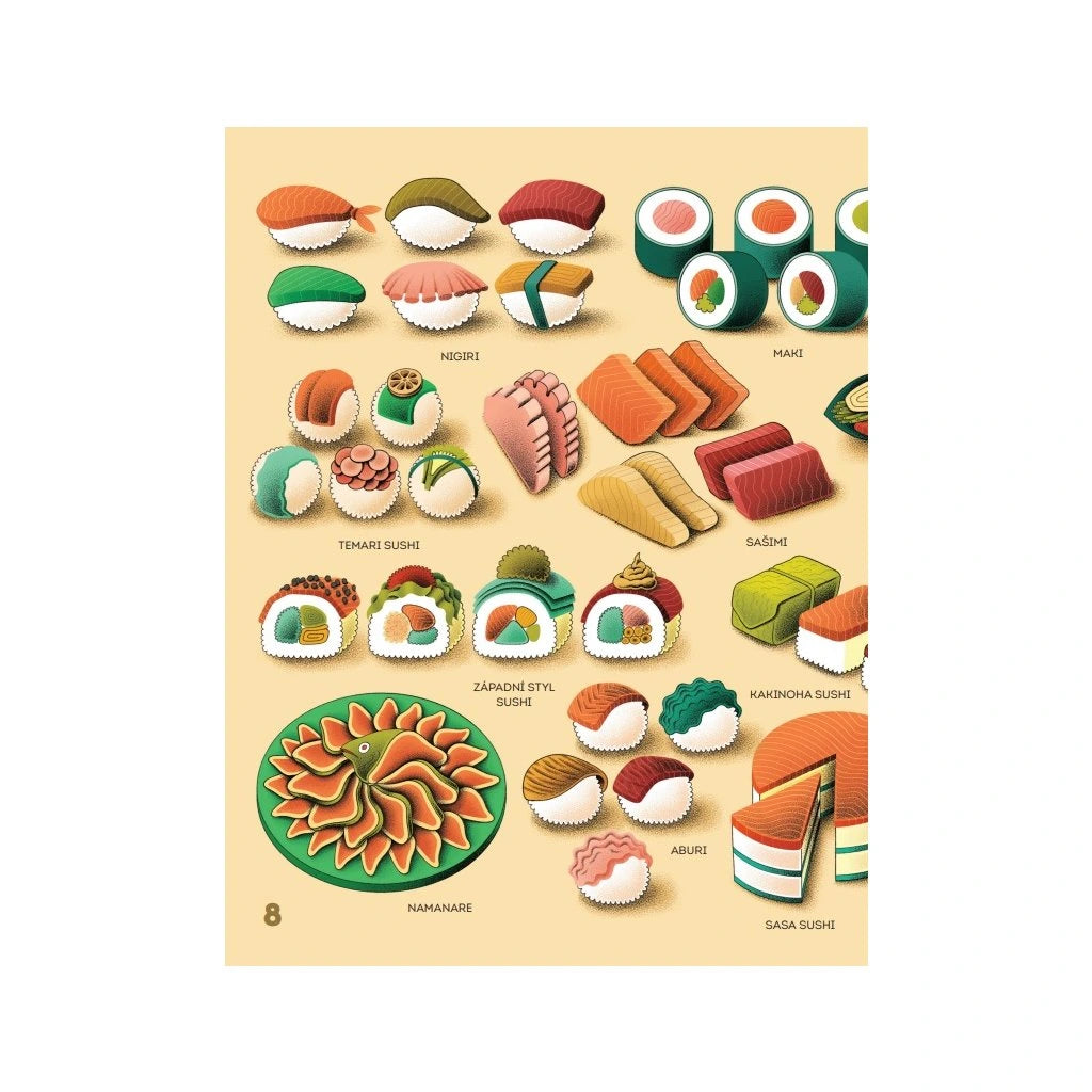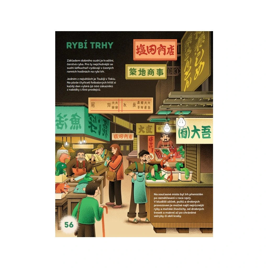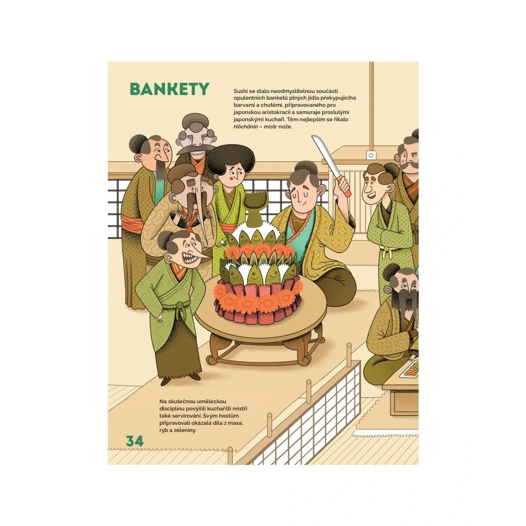 Syrová ryba, ocet, rýže a sušená mořská řasa? To nezní jako recept na vyhlášenou delikatesu. A přece si sushi - protože právě o něm je řeč - svou specifickou chutí podmanilo celý svět. Poznejte vůněmi prostoupený příběh japonského národního jídla a vydejte se po jeho stopách od horských rýžových plantáží přes okázalé bankety, chaotické a hlučné rybí trhy, historické uličky s prvními sushi stánky až po moderní restaurace současného Tokia. Tento vtipný ilustrovaný ilustrovaný průvodce vám nabídne nejen mnoho překvapivých informací sahajících do dávné i nedávné minulosti, ale také neobyčejný portrét země, která odjakživa fascinovala a inspirovala, a to nejen svými chutěmi.