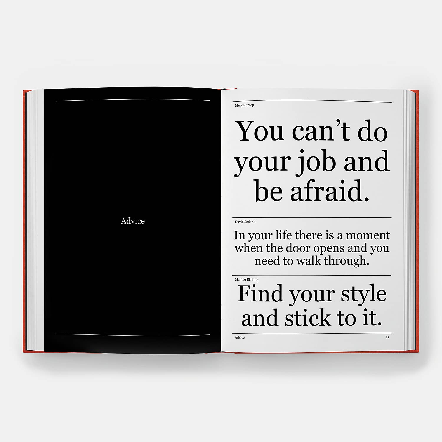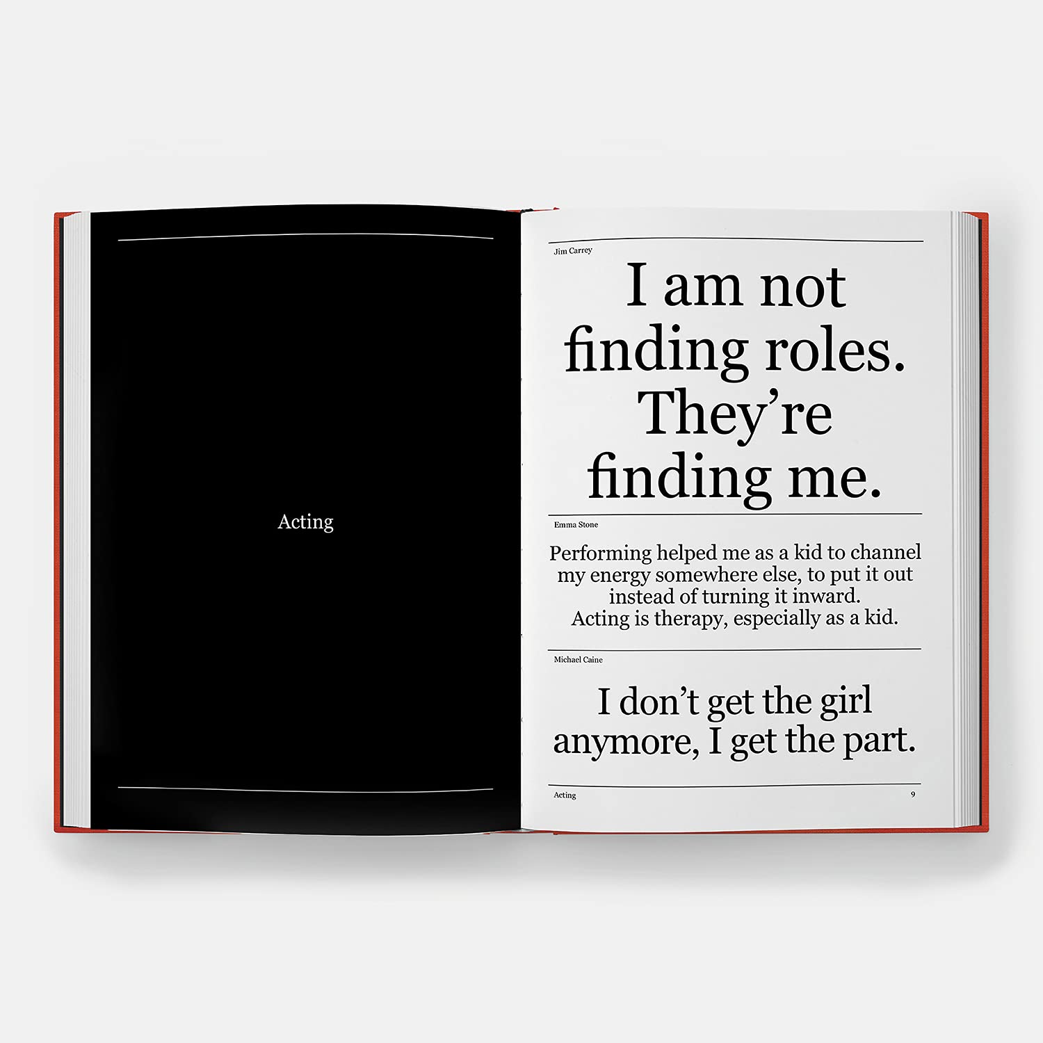 Over the last decade, The Talks has conducted more than 500 interviews with cultural visionaries – illuminating conversations with artists, actors, directors, chefs, fashion designers, architects, authors, musicians, and athletes. For this book, The Talks’ founders Sven Schumann and Johannes Bonke have selected the finest quotes from those conversations and arranged them by category – including acting, advice, age, beauty, creativity, inspiration, love, money, nature, rebellion, and more. The result: a fast-paced, insightful look into the lives and minds of the creative voices of our time.