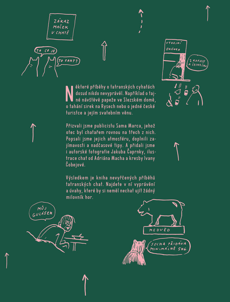 Kniha nevyprávěných příběhů tatranských chat. Najdete v ní příběhy a úvahy o drobných příhodách, ale i skutečné legendy, které by neměly chybět žádnému milovníkovi hor. Dozvíte se například o tajné návštěvě papeže ve Slezském domě, o losování sirek na Rysích nebo o české turistce a jejím svatebním věnu. Jejich autorem je publicista Samo Marec, jehož otec byl chatařem na třech z nich. Tím to však nekončí. U každé ze 13 chat jsme popsali atmosféru, přidali zajímavosti a nadčasové tipy. A přidali jsme také originální fotografie Jakuba Čaprnky a kresby Ivany Čobejové. Každá chata dostala také svou originální ilustraci od našeho oblíbeného pouštního autora Adriana Macha.