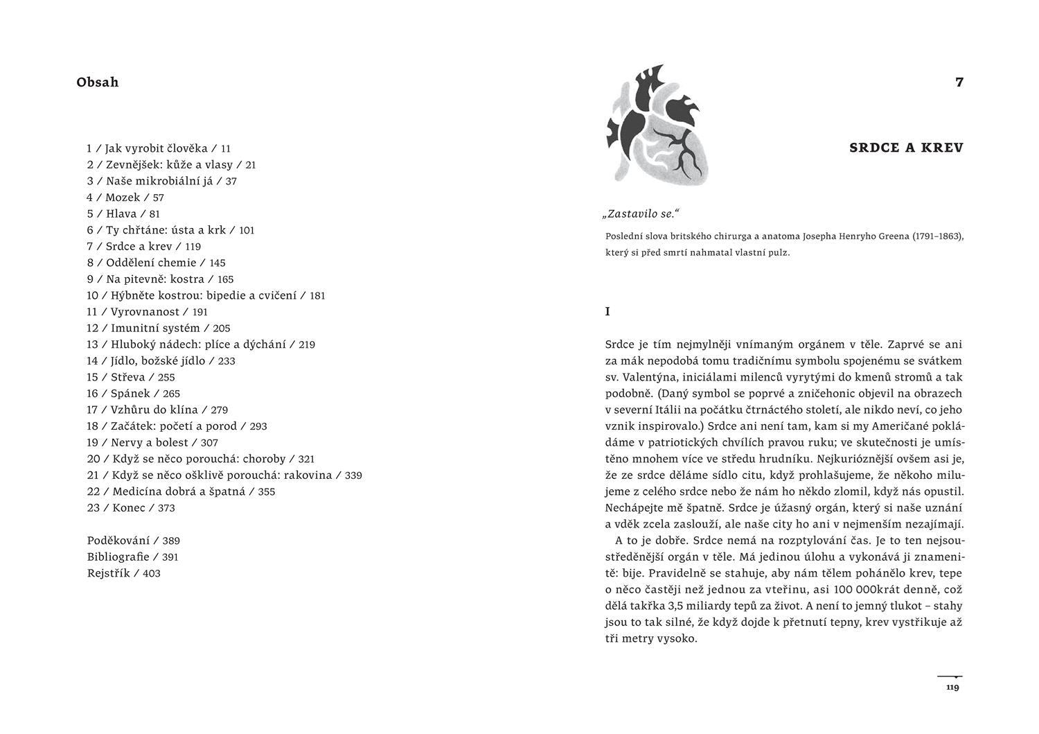 Celý život trávíme v jednom těle, a přece většina z nás příliš netuší, jak funguje a co se v něm odehrává. Historie anatomie a medicíny je plná zapomenutých hrdinů, ohromujících příběhů a zajímavých faktů. Mimochodem, od okamžiku, kdy jste začali číst tuto větu, vyrobilo vaše tělo asi milion červených krvinek. Podobných informací je v této fascinující, komplexní, čtenářsky přístupné a důvtipně napsané knize spousta.