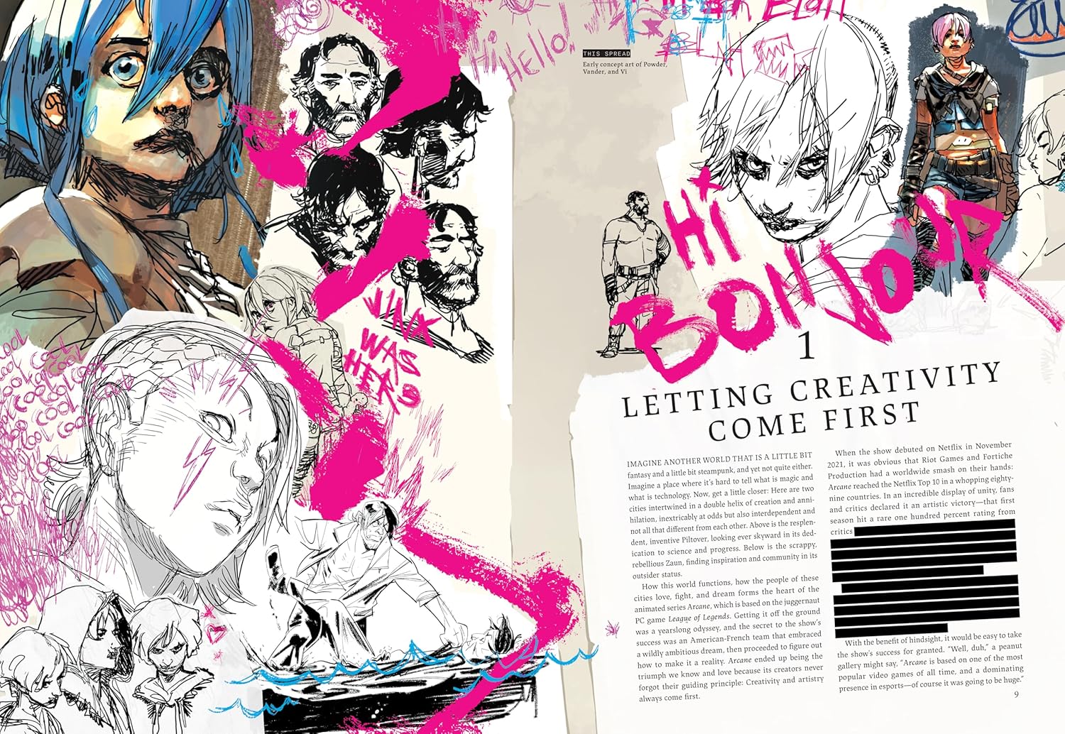 GO BEHIND THE SCENES: Filled with both behind-the-scenes looks at the inspiration and iteration of the people and places in Arcane, breakdowns of key scenes, and a deep dive into Fortiche’s artisanal animation style, The Art and Making of Arcane chronicles the incredible work and talent that went into crafting such a dynamic and instantly iconic series.