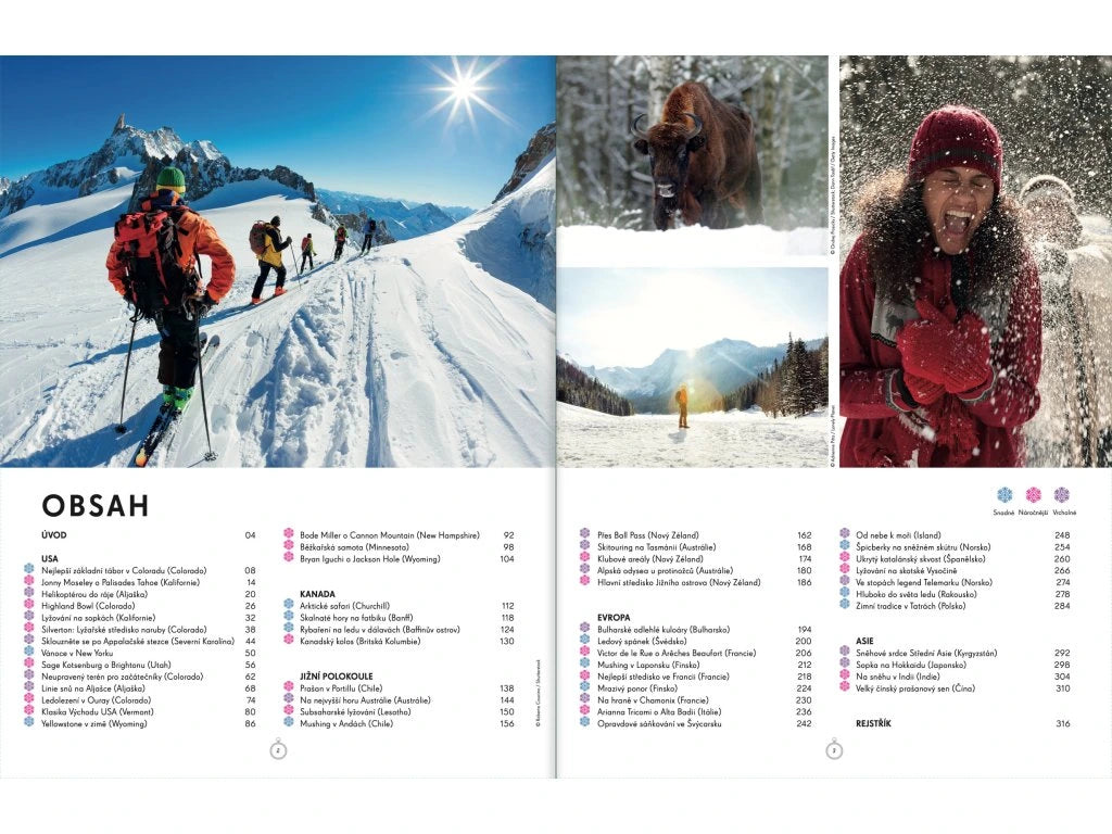 Inspirace pro milovníky sněhu a ledu. Povinná četba pro každého, kdo se chce vydat na mrazivou cestu. Zážitky skutečných dobrodruhů, dechberoucí fotografie.