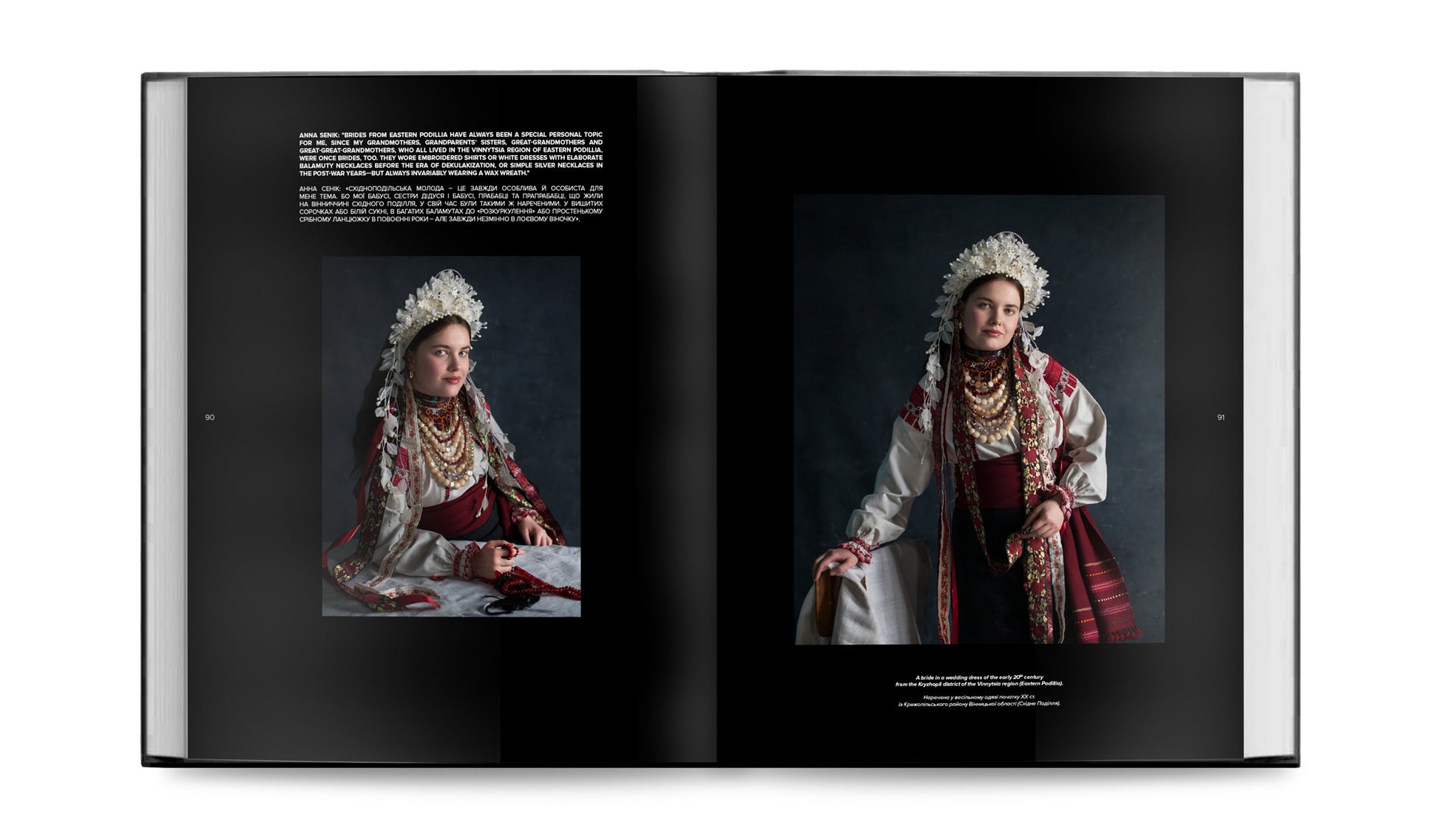 The book UKRAINIAN FOLK FASHION delves into the multifaceted world of traditional Ukrainian clothing. The photos taken by the famous photographer Anna Senik, who is the founder of the direction of Ukrainian ethnophotography, show clothes from nine ethnographic regions of Ukraine. Two more chapters of the book are devoted to Ukrainian embroidery and jewelry. Anna’s photo sessions resemble the visual storyboards of an epochal historical film, professionally captured on camera. Anna always tries to make all the images as authentic as possible, enlists the help of the best specialists: ethnographers, collectors, museum workers.
