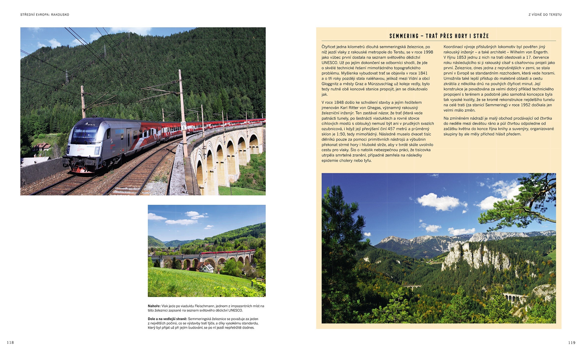 Každá trasa zahrnuje historii, technické detaily o trati a jejích vlacích, památky a výletní cíle, které byste neměli minout. Užitečné tipy doplňují nádherné fotografie vlaků, krajiny a turistických zajímavostí, které ocení každý cestovatel - ať už se na cestu vydáte, nebo se spokojíte se čtením v pohodlí domova.