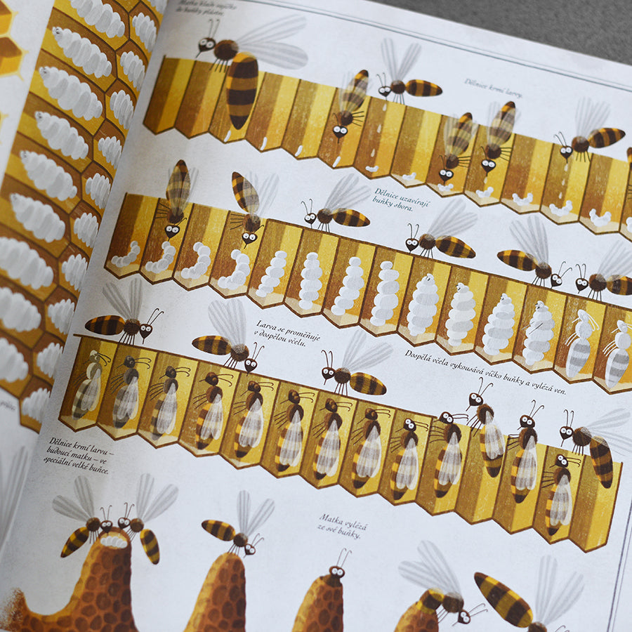 Přijměte pozvání do kouzelného království včel! Podívejte se zblízka, jak vypadají, nahlédněte do jejich domova, seznamte se s jejich zvyky. Sledujte, jak tančí, a odhalte, kdy a proč to dělají. Zjistěte, proč se ocitly na Napoleonově plášti a jakým způsobem vědci přišli na to, že včely byly na světě dřív než dinosauři. Vyzkoušejte si práci po boku včelaře, vydejte se s úly autem do mandloňového sadu, ochutnejte různé druhy medu. Jen dejte pozor, ať vás nepobodají!