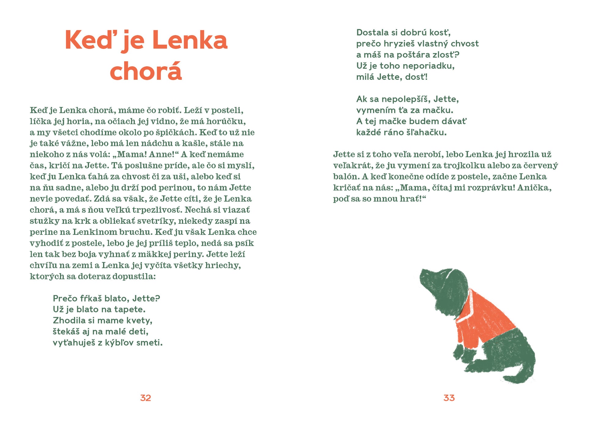 Sťahovanie je hrozná otrava. Stále si musíte zvykať na niečo nové. Spoznávať nové miesto, hľadať si nových kamarátov a nové kamarátky. Dvanásťročná Anne sa však nestratí. Má mladšiu sestru Lenku, bujnú fantáziu, ale hlavne mamu, ktorá pri každej príležitosti dokáže vymyslieť príbeh, srandovnú básničku či pesničku. Toto podmanivé rozprávanie sa odohráva kedysi dávno kdesi na dánskom vidieku, pokojne by sa však mohlo odohrať aj dnes na Slovensku. Kedysi dávno ju po dánsky napísala Iboja Wandall-Holm, Slovenka žijúca v Kodani, a dnes ju tá istá Slovenka napísala po slovensky a to vo veku 101 rokov! Prečítajte si príbehy Anne a Lenky, ich psíka Jette, otca a mamy, ktorá síce nerobí, no možno aspoň pracuje. Robota však rozhodne vyzerá ináč!