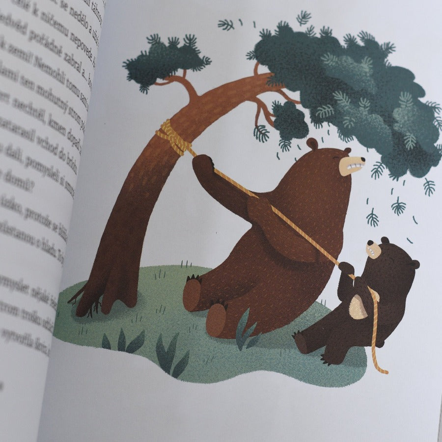 Medvědi bývají jak známo spíše samotáři, ovšem bručoun Nedvěd a malinký Miška jsou výjimka. Tihle dva spolu dokonce bydlí v jednom brlohu! Co v brlohu?! On je to vlastně útulný lesní byteček s ledničkou a mrazákem v kuchyni, což je pro mlsné medvědy ze všeho nejdůležitější vybavení. A Nedvěd i Miška jsou mlsní převelice. Věčně mají chuť na něco dobrého, oba zkrátka myslí břichem. Povahou jsou ovšem každý jiný: Miška rád zkouší nové věci, zatímco Nedvěd riskuje velice nerad. Asi už se z něj stává páprda! Anebo že by přece jen ne? Veselé medvědí příběhy se skvěle hodí jako první čtení pro začínající čtenáře. Autor v sobě nezapře překladatele a milovníka češtiny, a děti se tak naučí spoustu krásných českých slov a rčení.