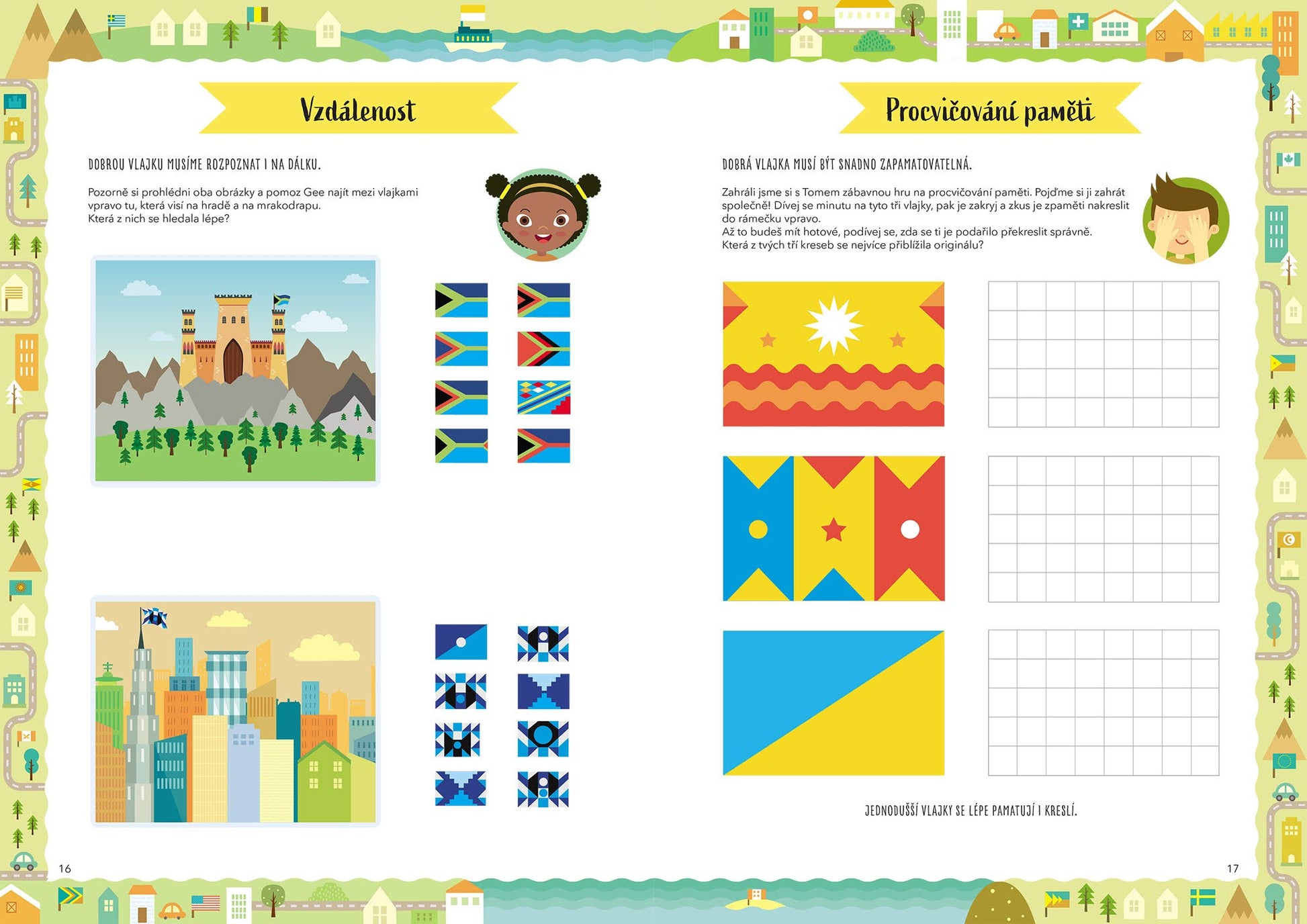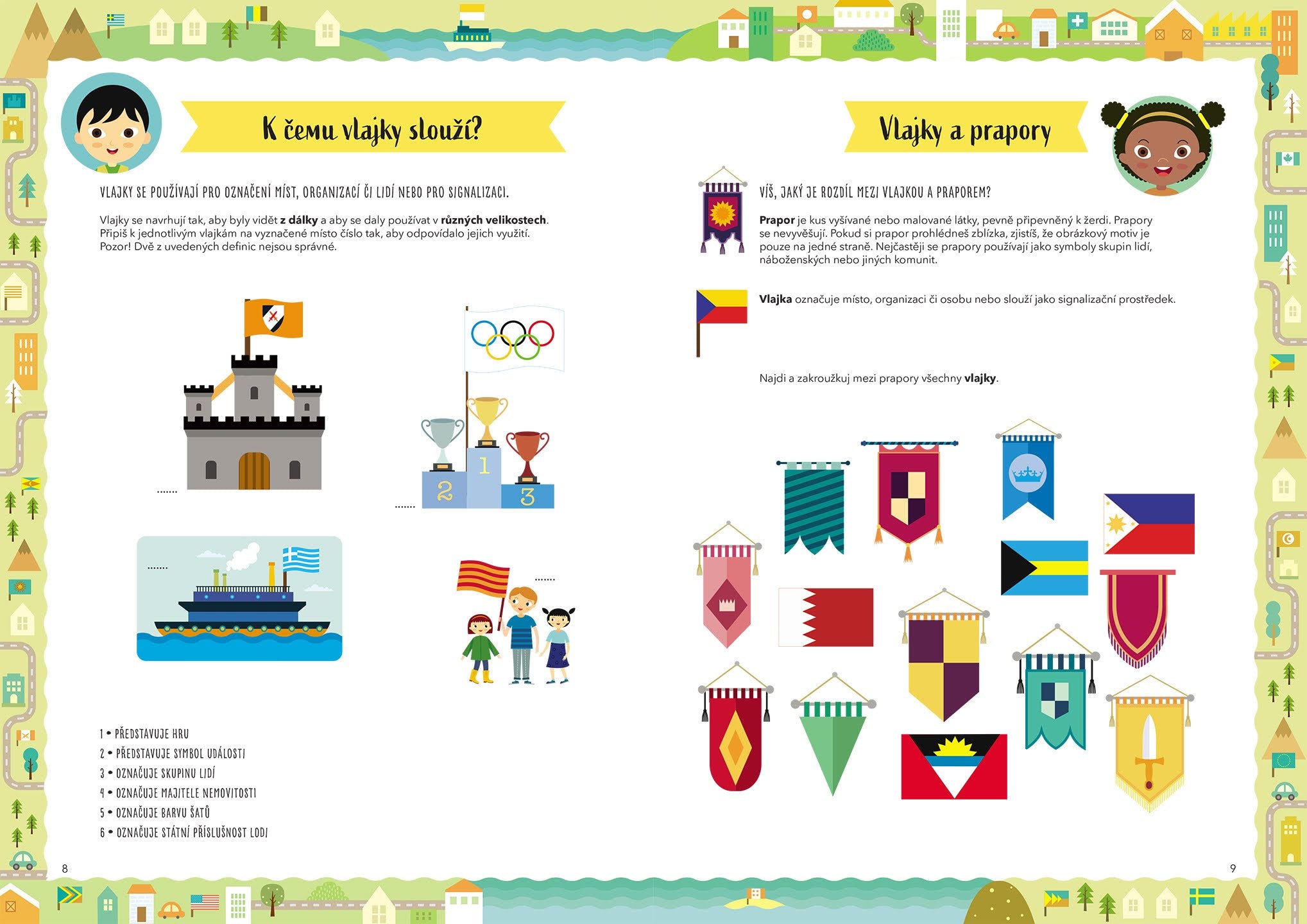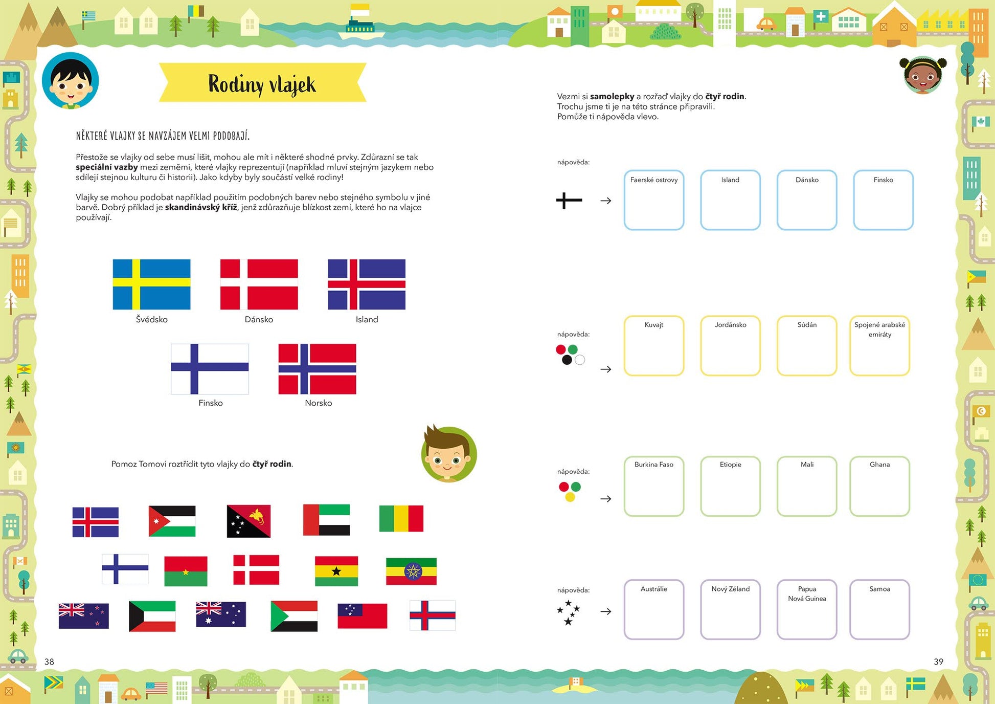 Geografie studuje také vlajky, které jsou symbolem například státu, města, organizace či skupiny, případně slouží k signalizaci. V knize se dozvíš zajímavé (a možná i překvapivé) informace o světě vlajek neboli vexilologii. Když si spolu se školáky Geou, Tomem a Benem, který je nadšenec do vlajek, vše dobře prostuduješ a zapamatuješ, na konci obdržíš stužku mladého vexilologa. Co všechno ti kniha nabízí? Dozvíš se, jaké jsou hlavní zásady navrhování vlajek a jak se vyvarovat chyb, jaký je rozdíl mezi vlajkou a praporem, jak se jmenují části vlajek, vyzkoušíš si paměť při překreslování vlajek, porozumíš na vlajkách symbolům a jejich skrytým významům, naučíš se mezinárodní námořní vlajkovou abecedu… Jistě tě pobaví hra, při které máš uhodnout vlajku, nebo hra, při níž se hází barevnou kostkou (tu si předem vyrobíš), vlajkové sudoku či pexeso. Budeš nalepovat samolepky nebo si můžeš navrhnout bláznivou vlajku, která porušuje všechna vexilologická pravidla.