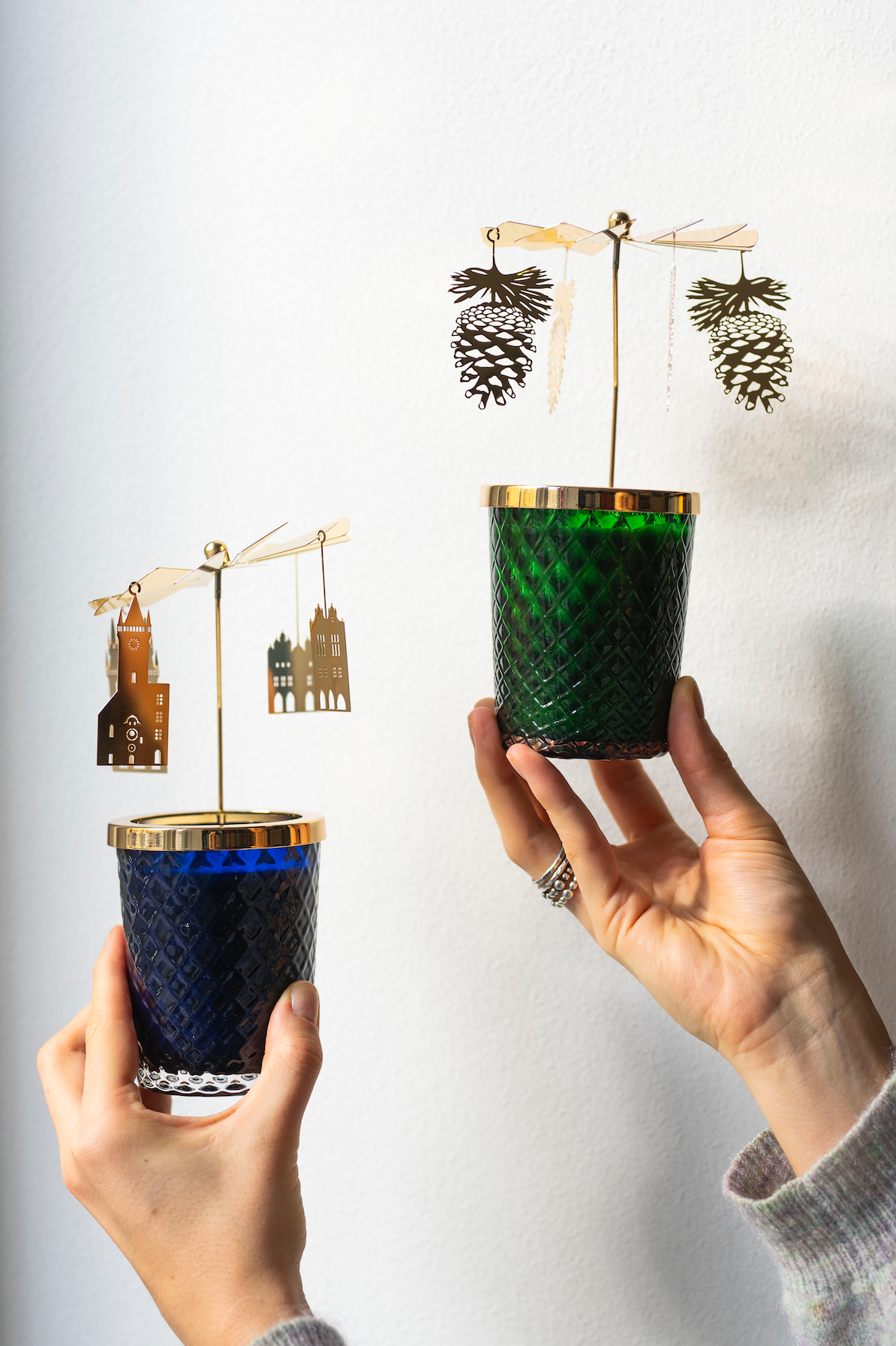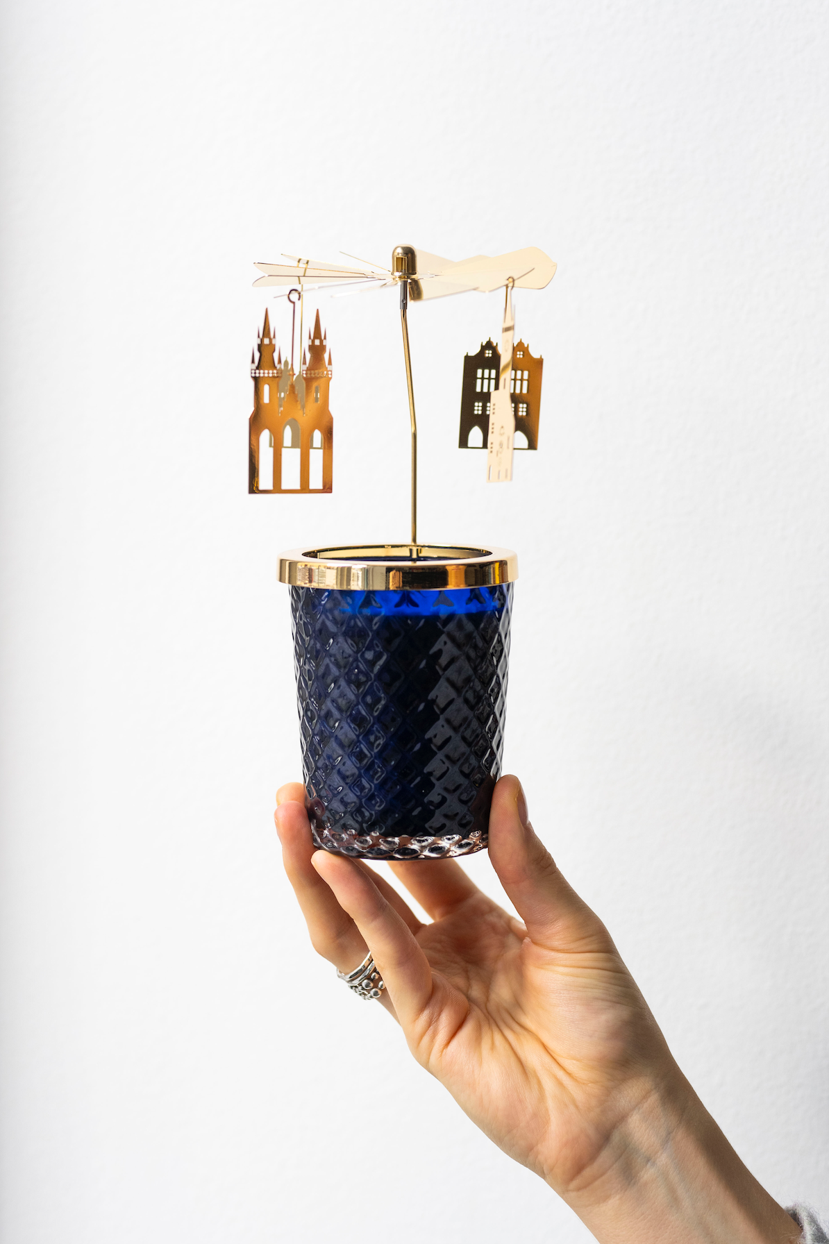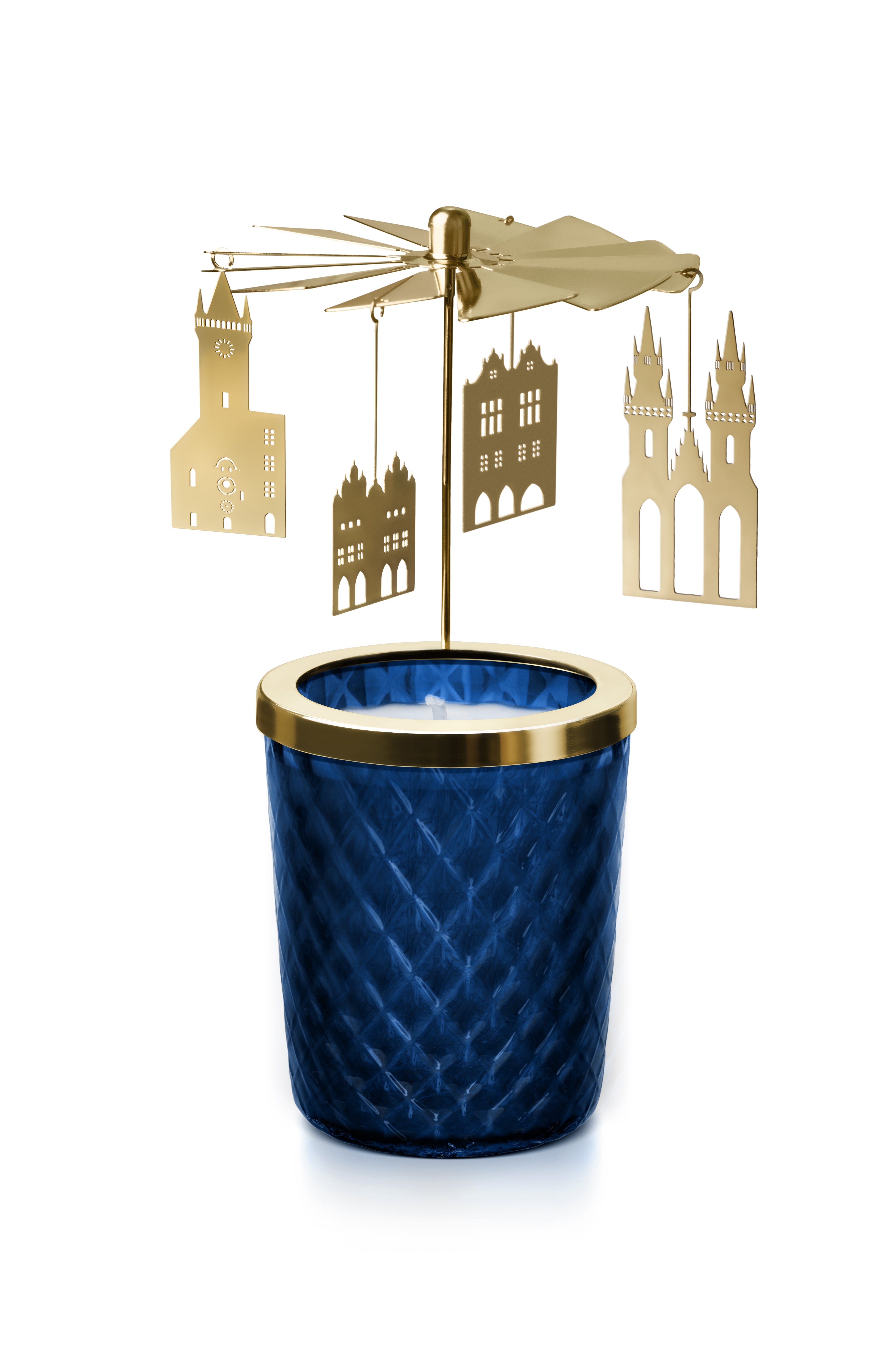 Mystická vůně Black Madonna se tuto sezonu představuje v novém světle. Sklo má barvu půlnoční oblohy a je doplněno o otáčivý kolotoč s motivy domů na Staroměstském náměstí. Zveme vás na procházku noční Prahou prozářenou měkkým světlem luceren. Vaše smysly pokouší vůně posvátného kadidla s pikantním akcentem skořicové kůry. Svěží vůni jedle v samém srdci svíčky provází hřejivý dotek jantaru, který svíčce dodává nečekanou hloubku. Zbývá jen zasvětit noc tajemnému prožitku. Magickou Prahu na dárkové krabičce navrhl grafik Jan Košátko, kterého jsme pro tuto sváteční příležitost přizvali ke spolupráci. Jemné zlaté motivy na modrém papíře evokují noční procházky historickou Prahou. Autorkou motivů pražských domů na otáčivém kolotoči je česká designérka Tereza Hradilková. Jedná se o uměleckou ruční práci s precizním laserovým výsekem.