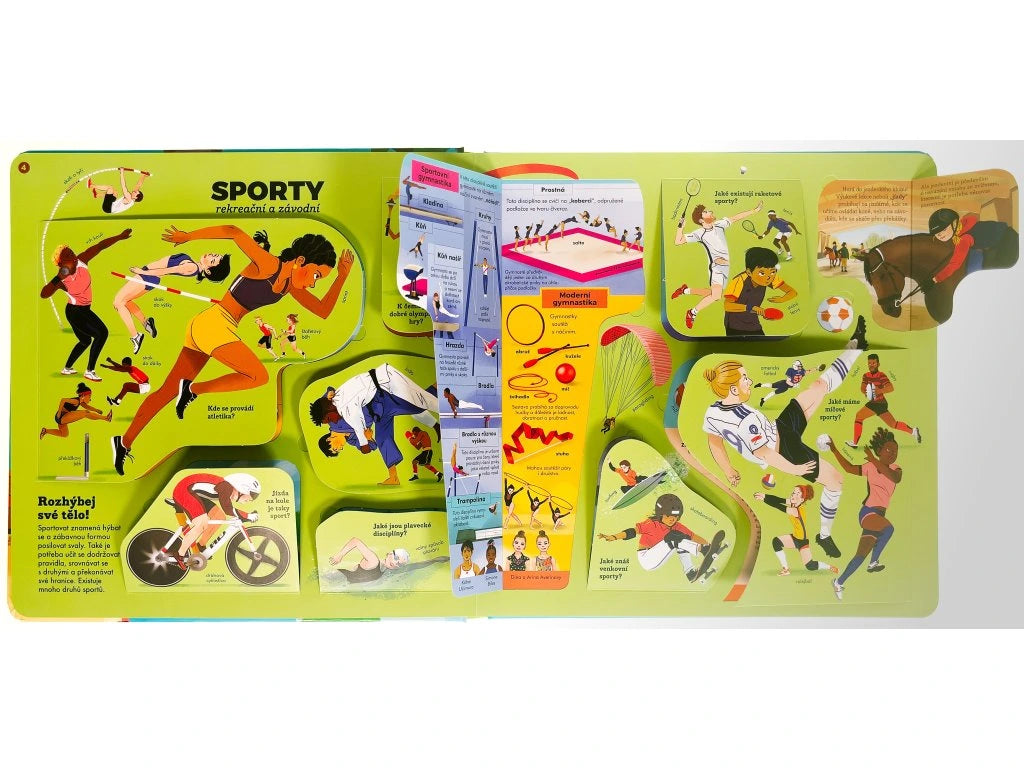 Úžasná encyklopedie plná ilustrací a odklápěcích okének vás seznámí s nejdůležitějšími tématy jako: tělo, dům, město, příroda, zvířata, moře, země, věda, sport, dějiny, vesmír… Obsahuje: poutavé texty, uzpůsobené k hlasitému předčítání s dětmi; celostránkové ilustrace se spoustou detailů; odklápěcí okénka, v nichž se ukrývají podrobnější informace nebo vysvětlení, jak vše funguje; otázky a odpovědi, které probudí dětskou zvědavost. Více než 180 otázek a odpovědí a stejné množství odklápěcích okének rozvíjí představivost a pomáhá dětem poznávat svět.