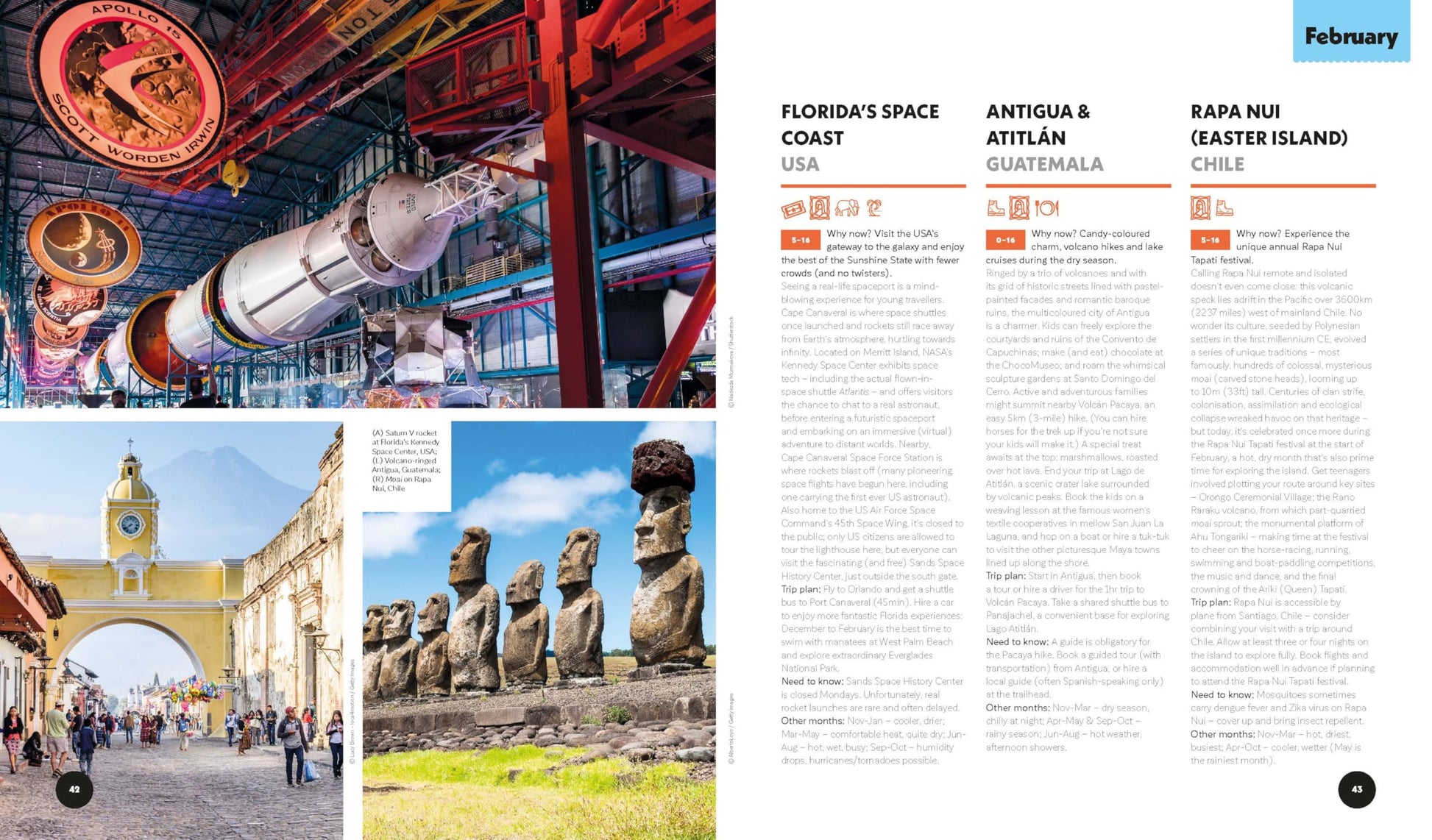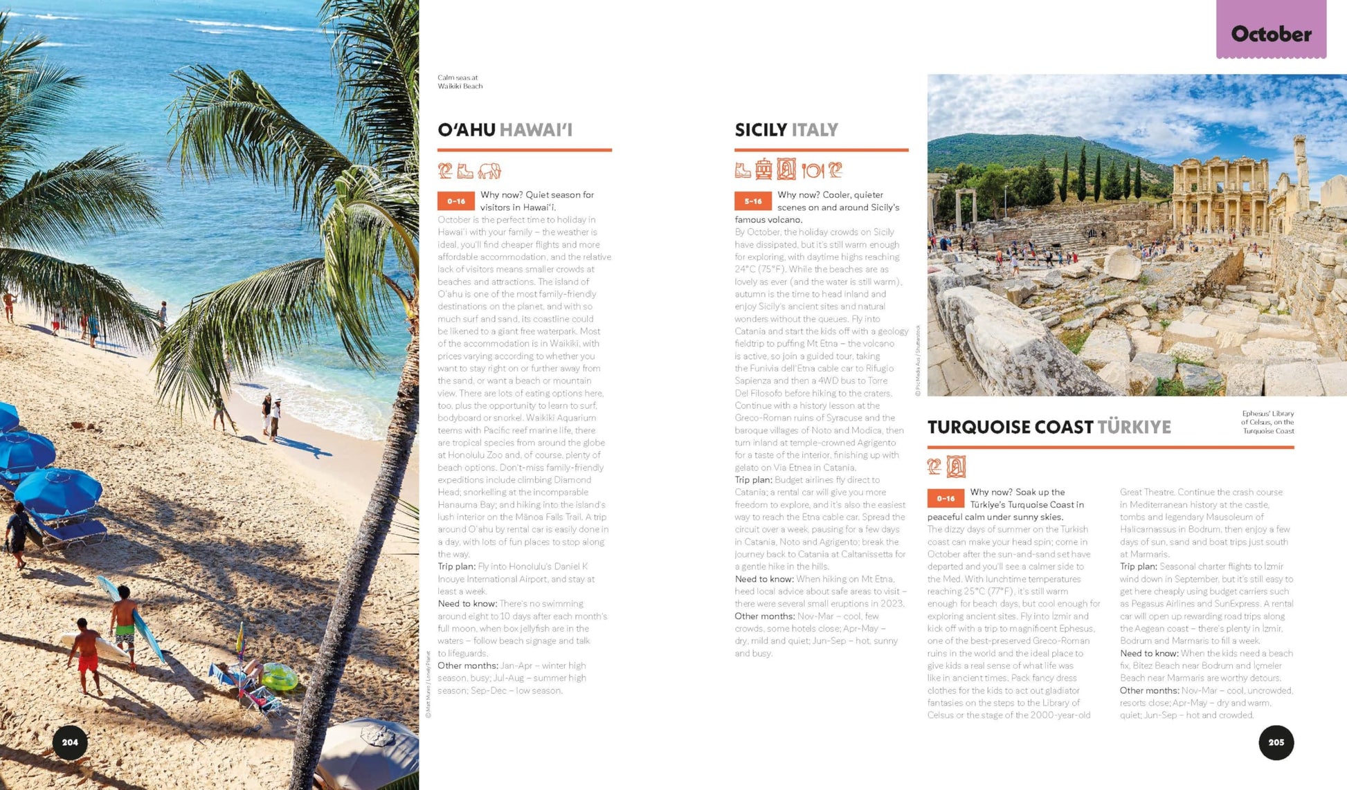 - Written by Lonely Planet’s team of travel expert parents who provide trip planning tips; need-to-knows; how-to insights; and suggestions of other times throughout the year to visit the destinations