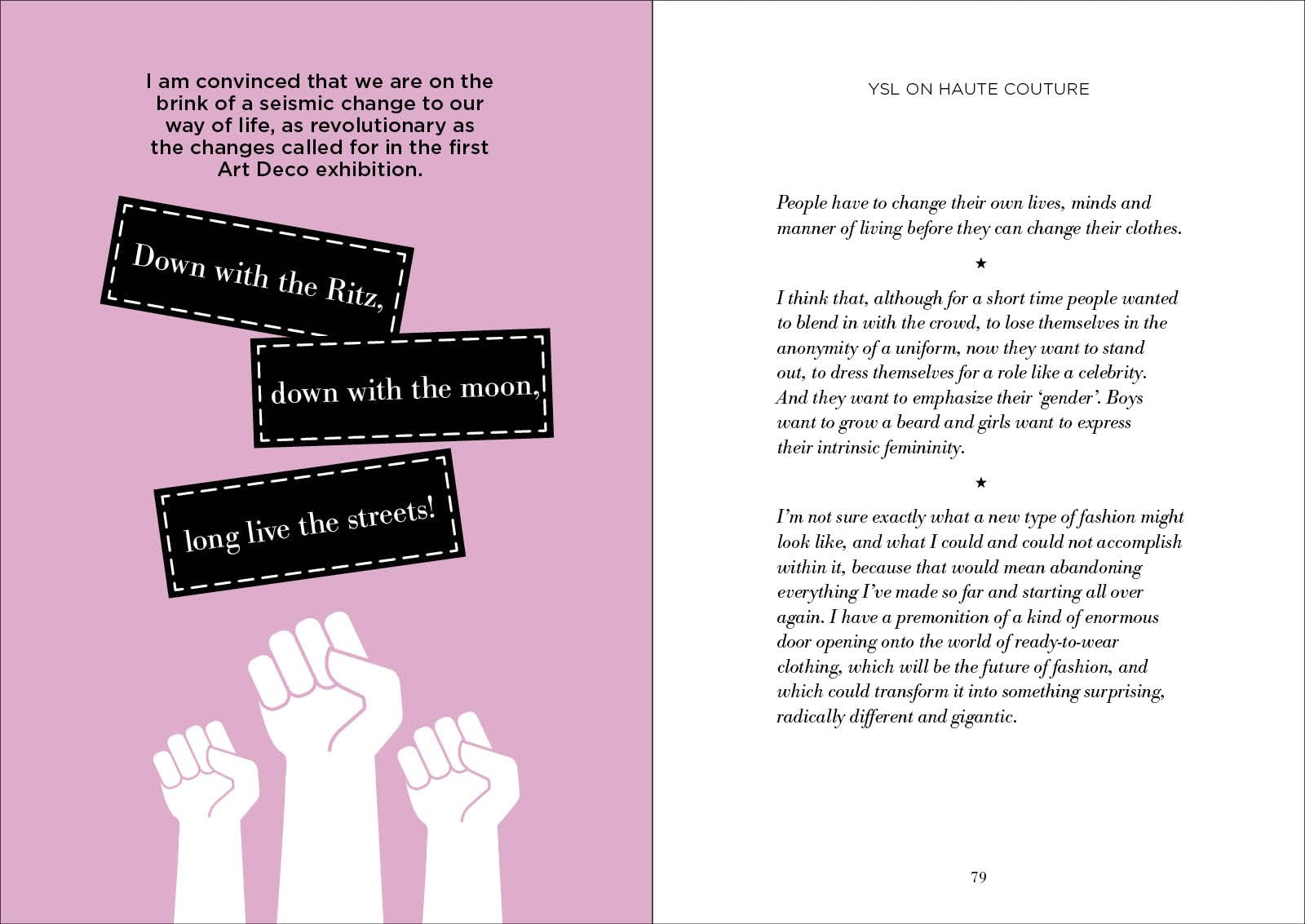 A stylish collection of legendary designer Yves Saint Laurent’s maxims on fashion, craft, women and inspiration, presented in an attractive gift format.