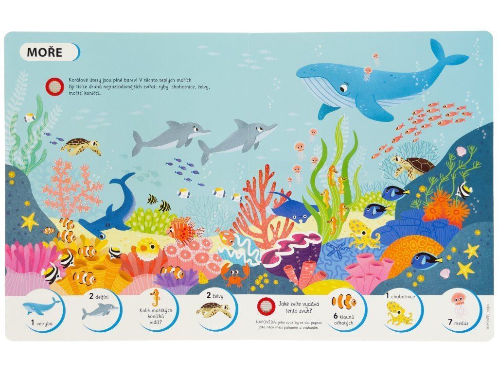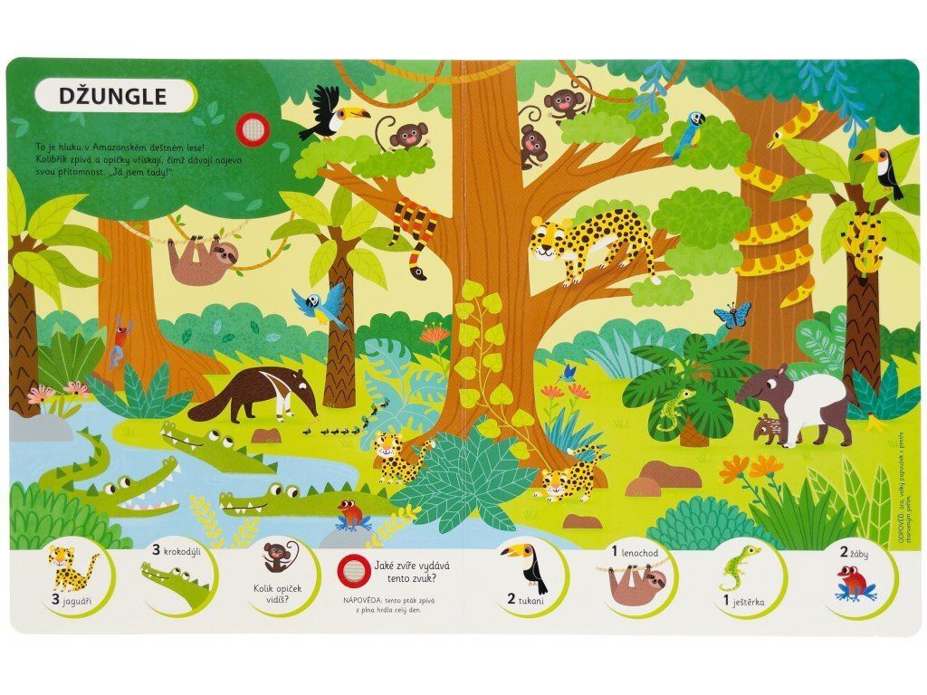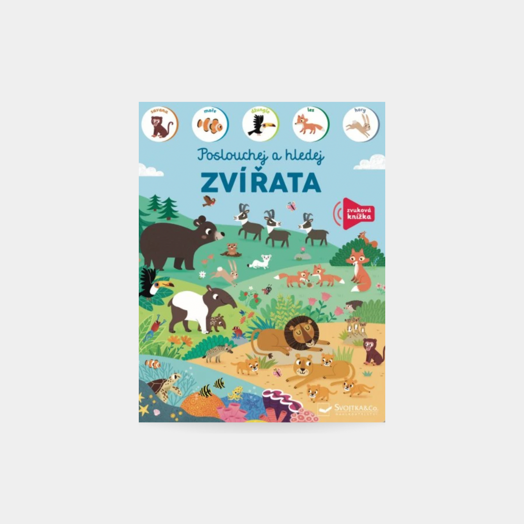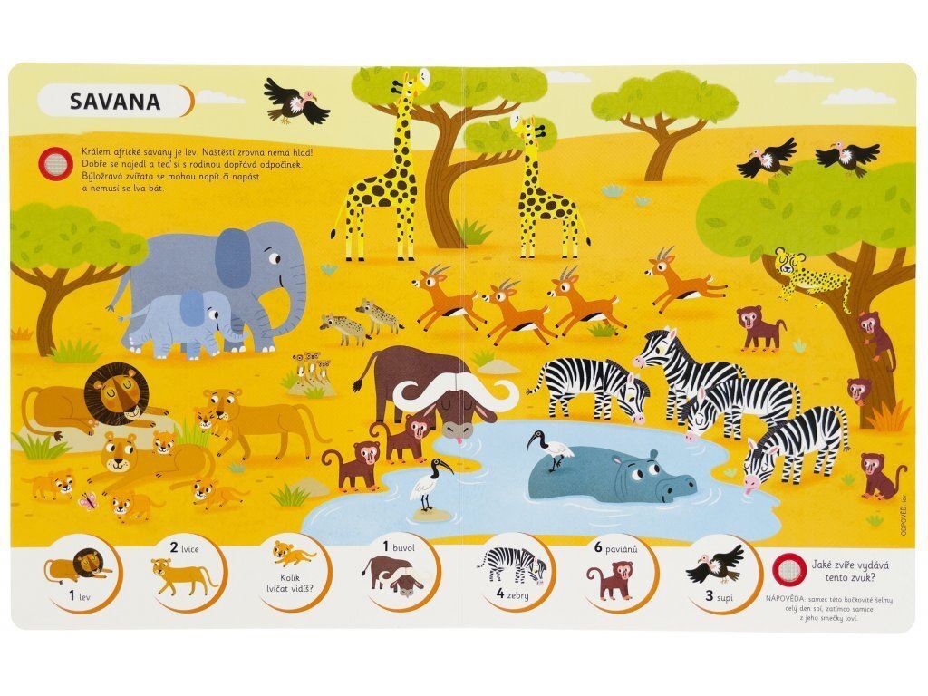 Hledej a poznávej s touto zvukovou knihou zvířata z celého světa! V různých prostředích, od savany přes moře až po hory, se seznámíš s jejich obyvateli a dozvíš se i zajímavé informace. Na každé straně této krásně ilustrované knížky poslouchej nejrůznější zvuky a poznej, která zvířata je vydávají. Ale neboj! Dostaneš k tomu i nápovědy, které ti zvířata představí, a i zde se dozvíš další zajímavosti ze zvířecí říše.